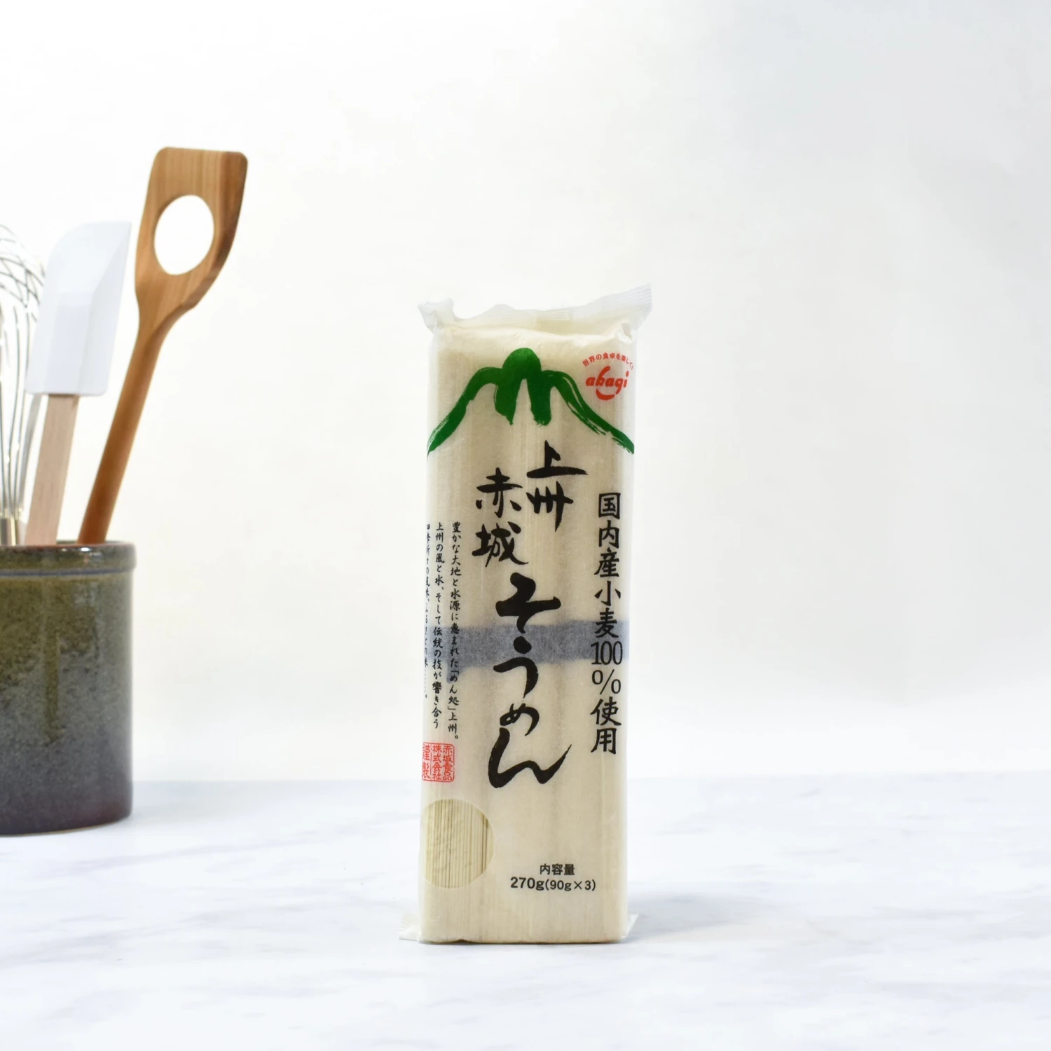 Producer Akagi makes its noodles in Gunma Prefecture in central Japan, an area famous for its climate, abundant water and quality of wheat. The producer named itself ‘Akagi’ after the highest mountain in the district. This Joshu range of noodles is made according to traditional Japanese recipes, and packed in recycled paper packaging.