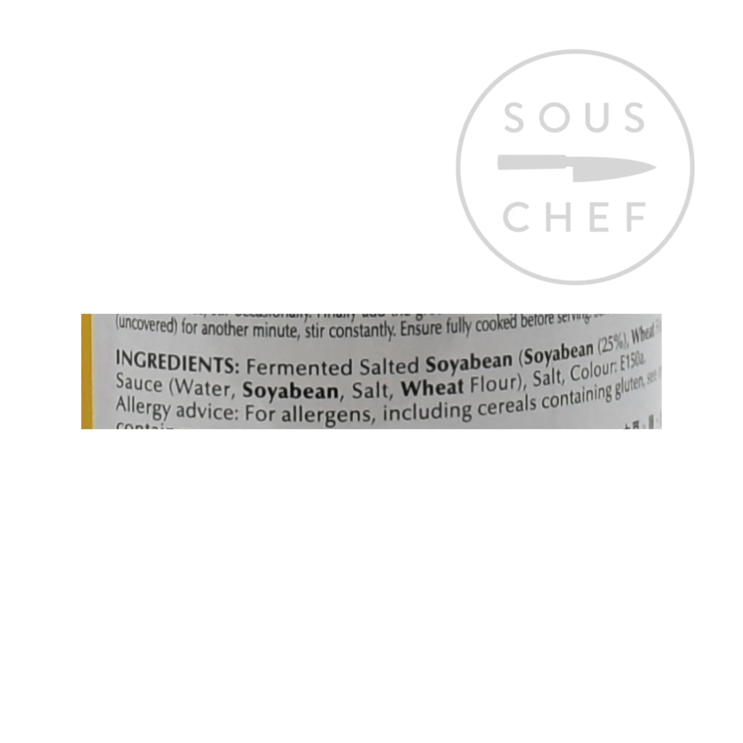 Ingredients: Salted soyabean (soybean (25%), wheat flour, salt, water) sugar, soy sauce ( water, soyabean, salt, wheat flour), salt, colour: E150a. Contains wheat, gluten and soya. Produced in a factory that contains sesame. Please note that depending on availability, brand may differ from that shown in the photograph.