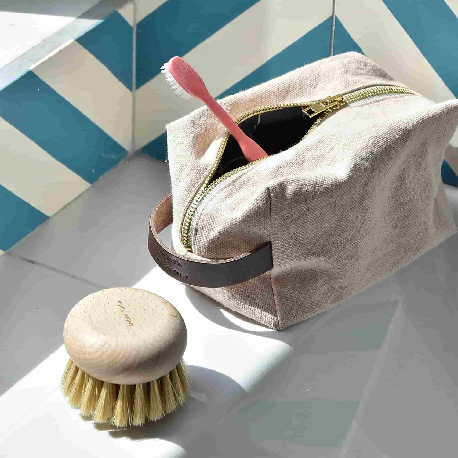 Andree Jardin’s clear pink hanging toiletry bag is just the thing for taking your toothbrush on holiday. Or keep toiletries in the bathroom, and hang it from the back of your door or towel hook. Made with 100% cotton, the bag is roomy and durable, with a sturdy zip that opens down the sides so you can fit even more in!