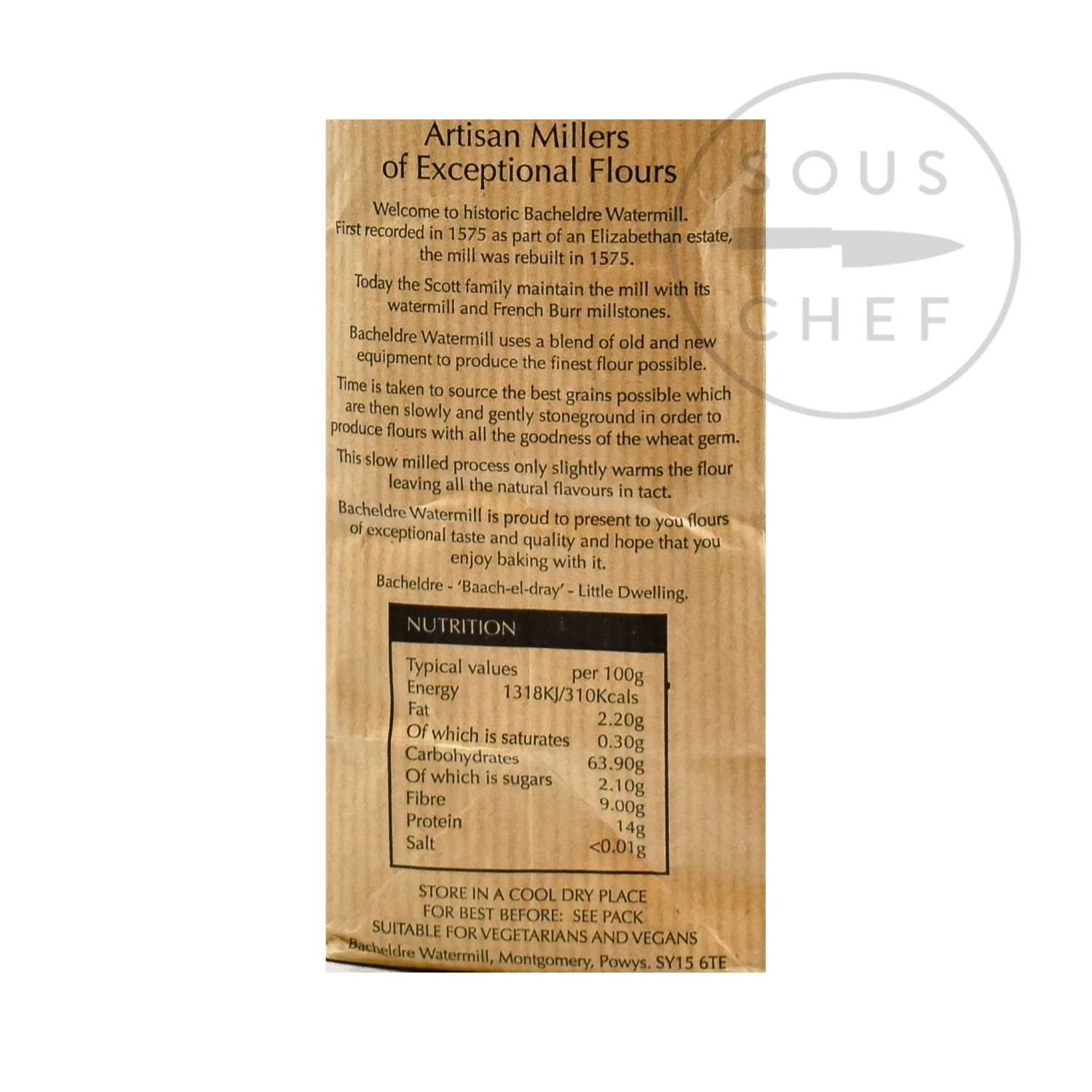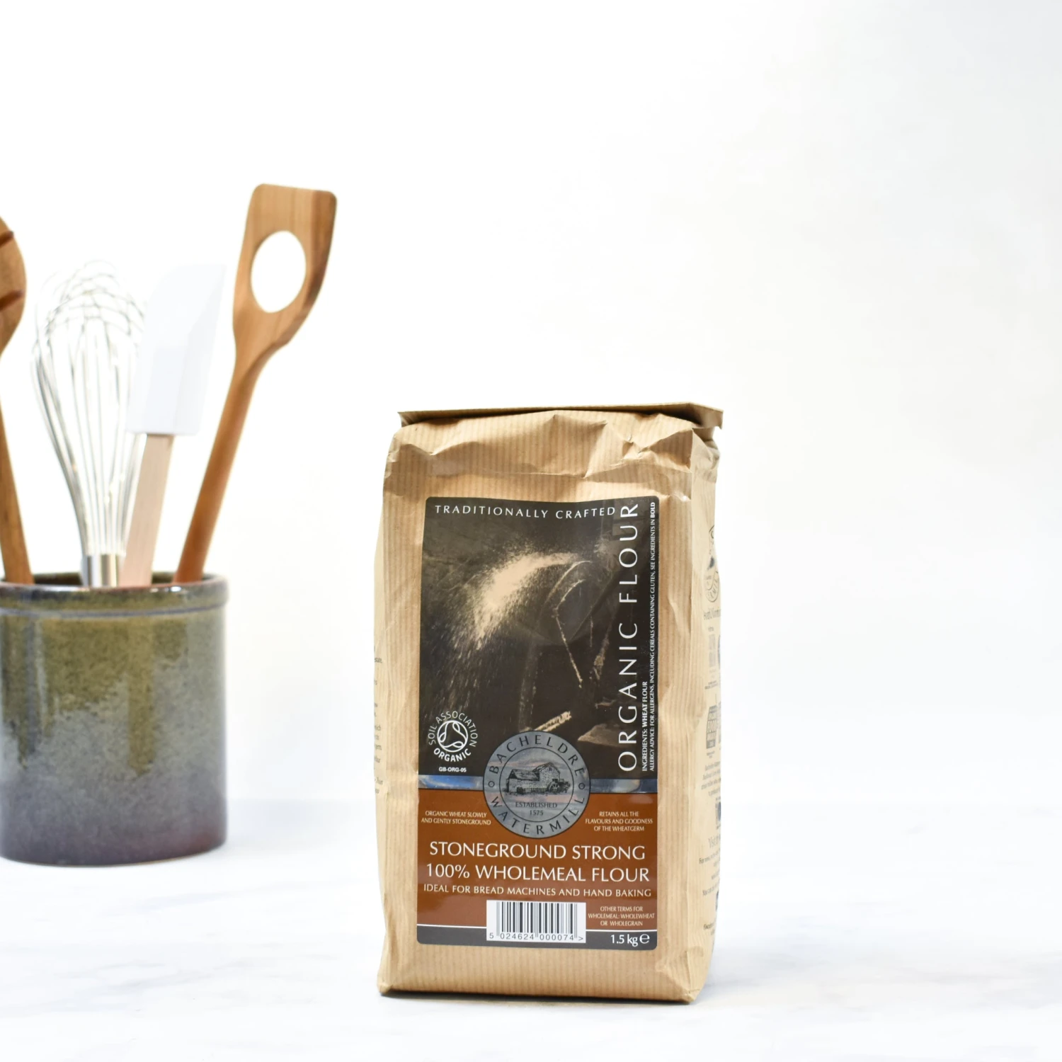 Bacheldre organic stoneground strong wholemeal flour makes full-flavoured and satisfying bread. Wholemeal wheat flour, also known as wholegrain or wholewheat flour, retains the flavour and nutritional value of the wheatgerm.