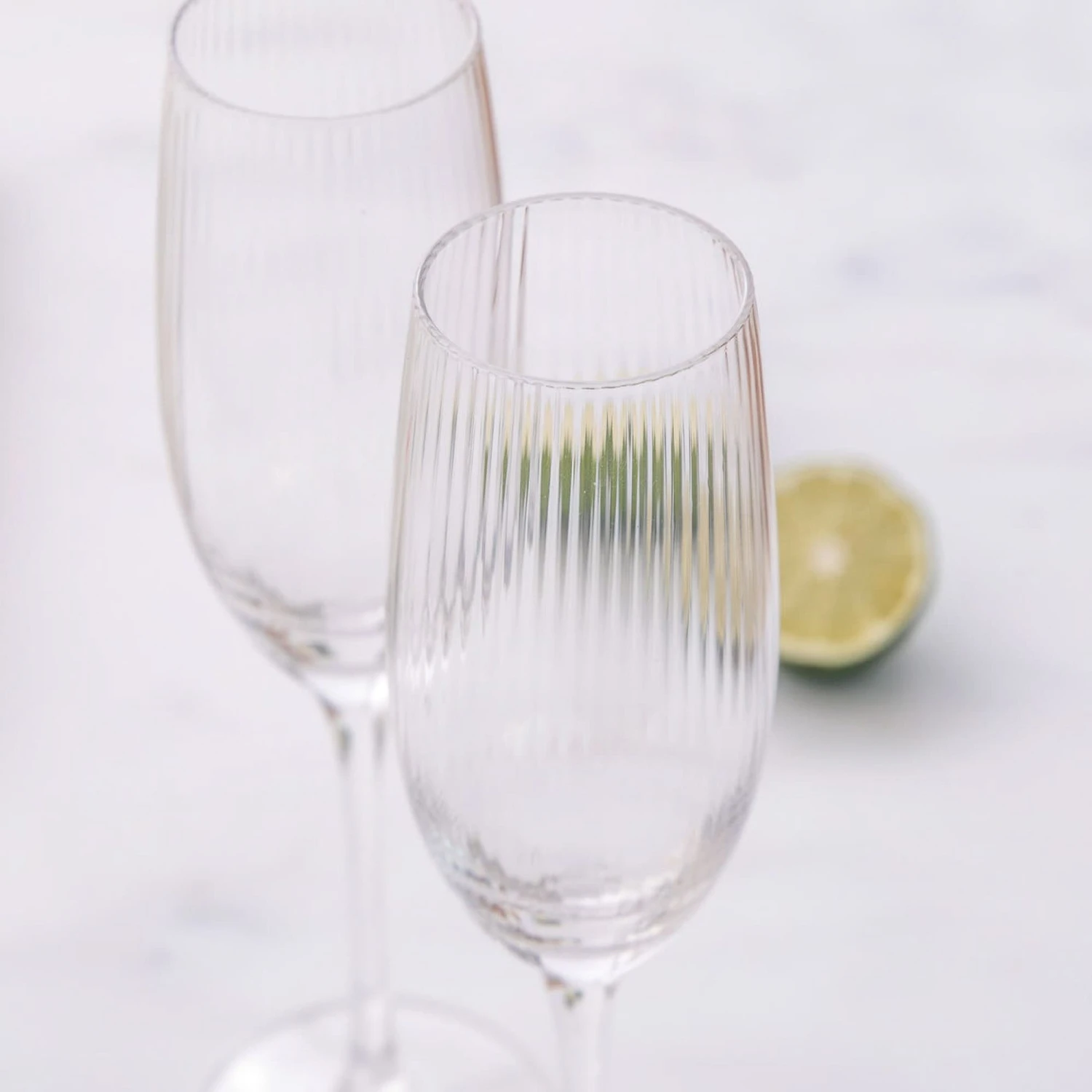 These ribbed champagne flutes are the finishing touch to complete your dinner party table. The subtle ribbed pattern catches the light beautifully – a modern and elegant design.