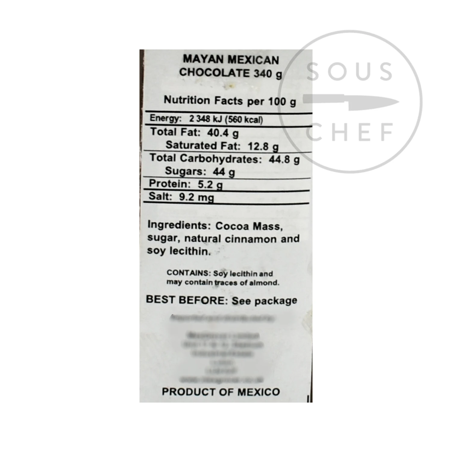 Ingredients: Cocoa mass, sugar, natural cinnamon and soy lecithin.