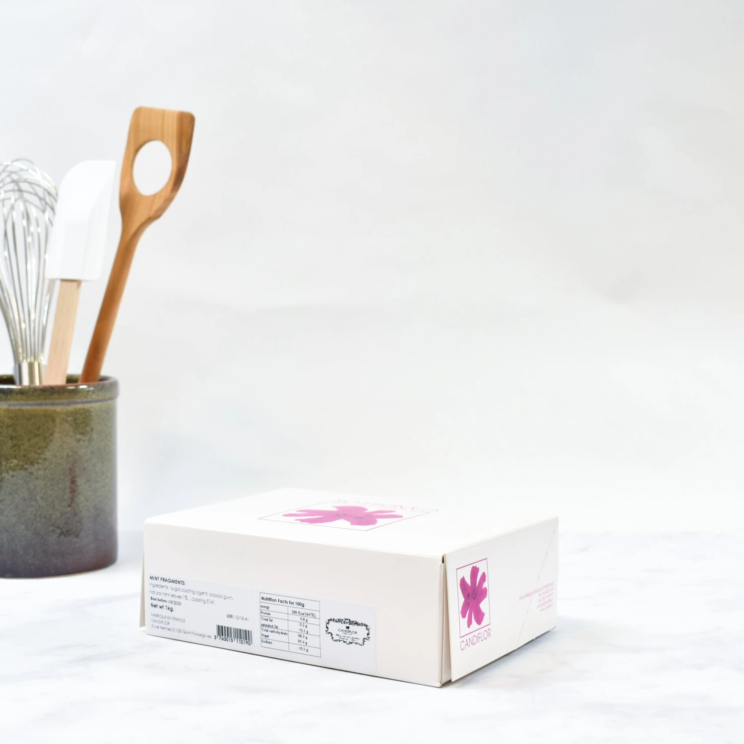 Use crystallised mint leaf pieces to decorate desserts and handmade chocolates, or even sprinkle over ice cream. The sugared pieces of real mint leaves have a sweet, spearmint flavour.