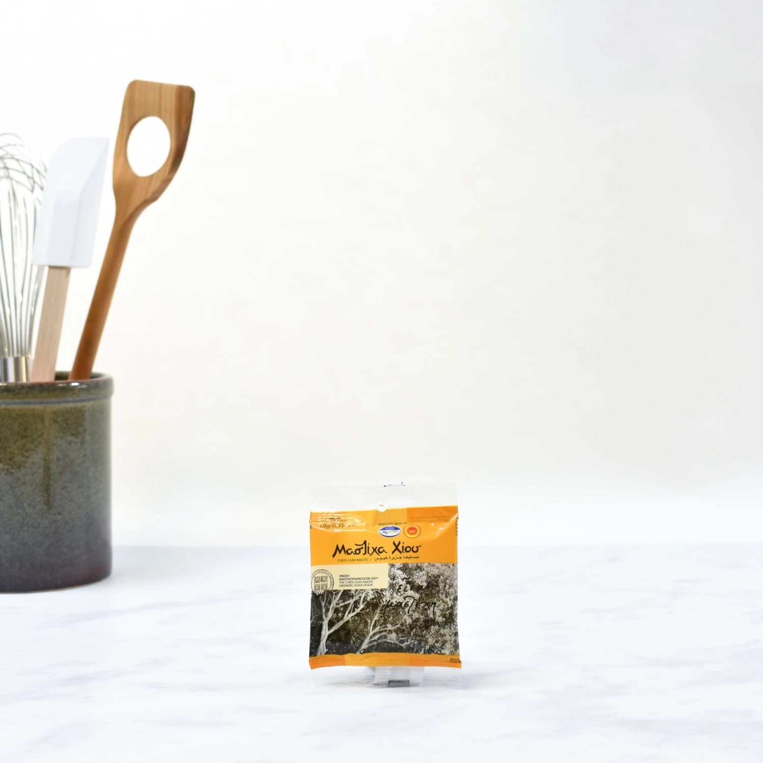 Gum mastic crystals have delicate pine-resin and balsamic aromas, and are used in both sweet and savoury cooking. The crystals are also famous for their health benefits, thought to freshen breath, and have antioxidant, anti-inflammatory, and antibacterial properties.