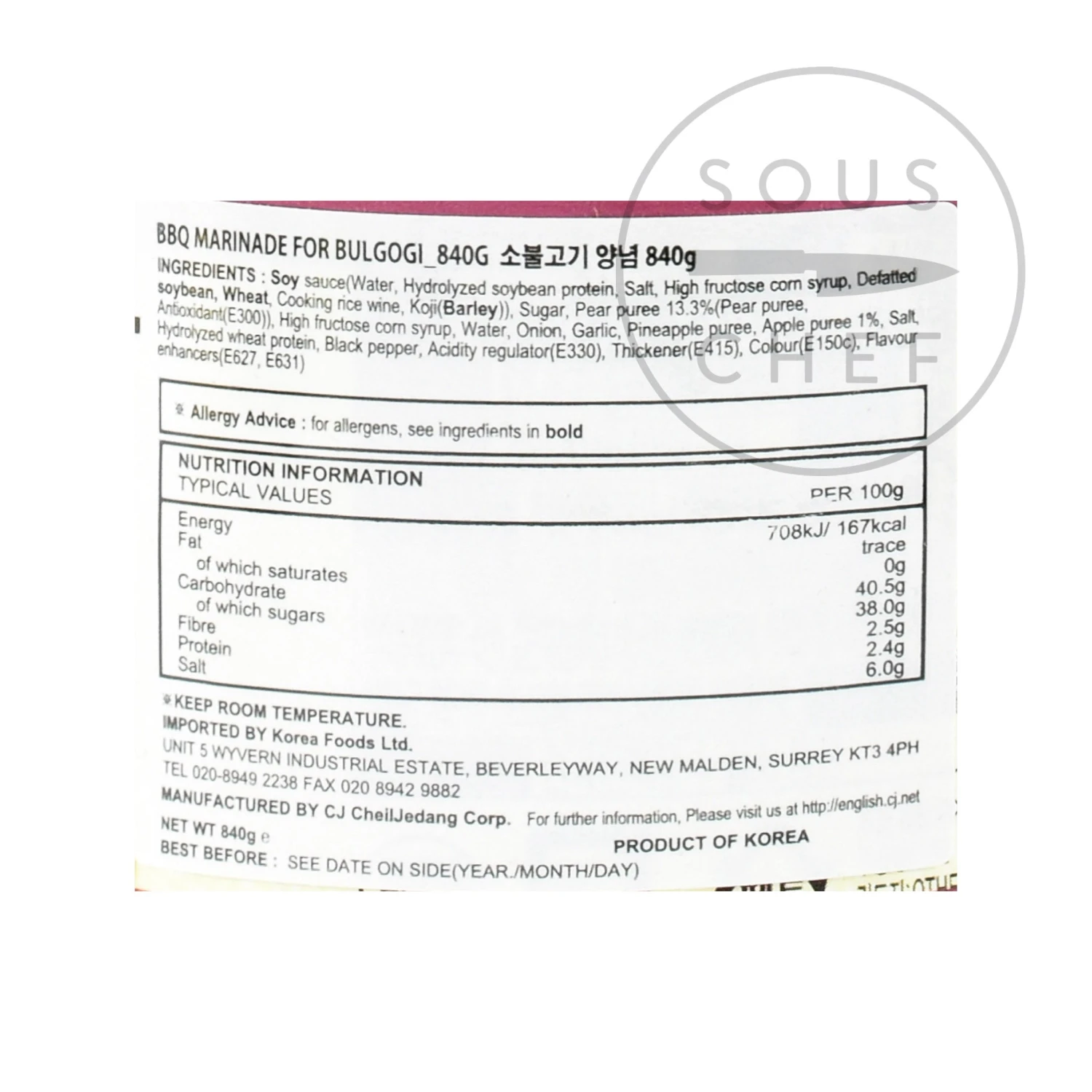 Beef bulgogi (marinated and grilled slices of beef) is a Korean classic. This pre-made marinade combines soy sauce with salt, cooking rice wine, koji and fruit purées for a sticky, sweet sauce. Plus, the addition of pear purée helps make the meat super tender.Â