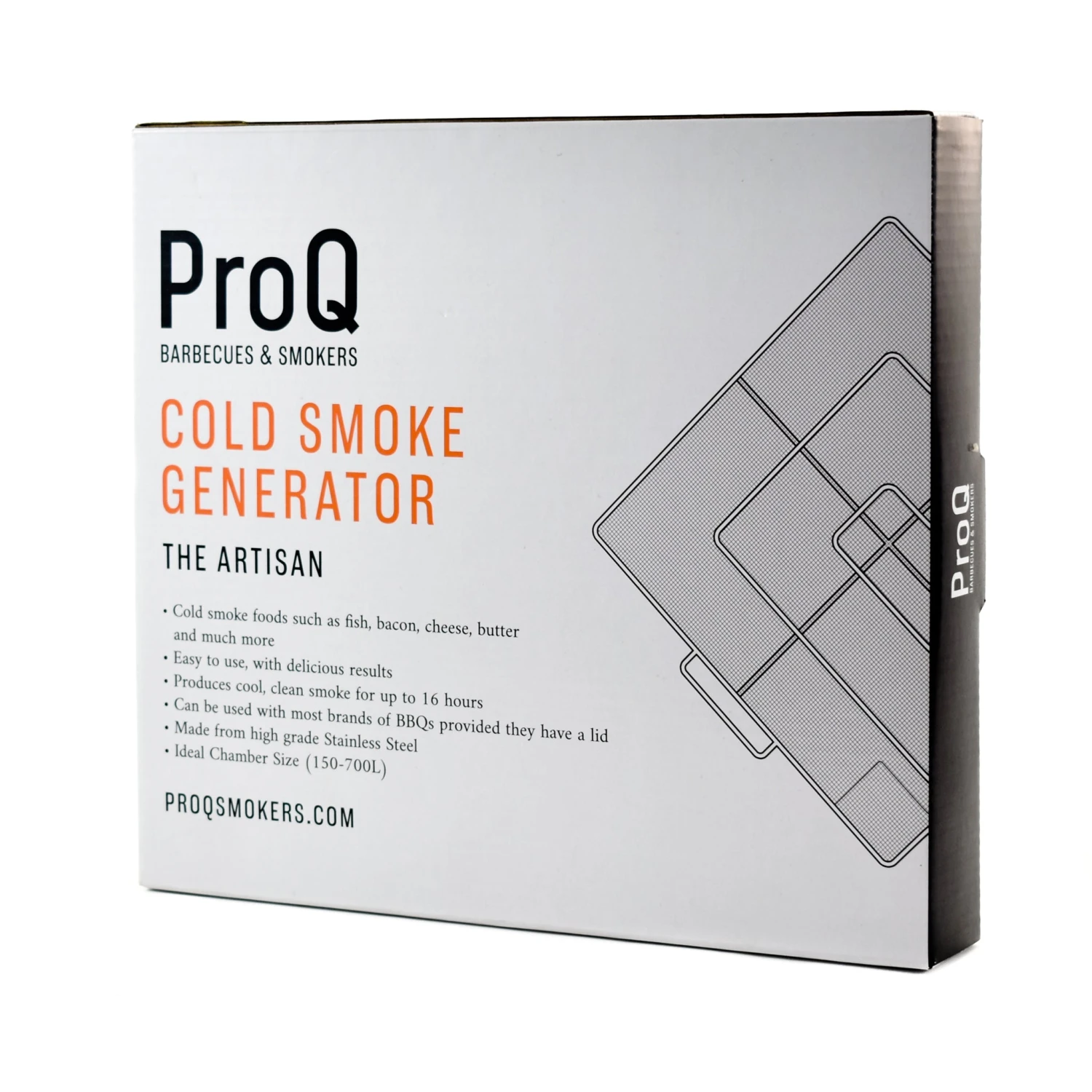 The Artisan ProQ cold smoke generator is the larger vesion of the ProQ cold smoke generator and produces up to sixteen hours of aromatic smoke – perfect for cold smoking fish, meats and cheeses, and infusing them with wonderful camp-fire flavours. Simply place the smoke generator inside a sealed metal box to retain the smoke – for example a barbecue with a lid (like a Weber BBQ), or a metal dustbin. Alternatively sit in the ProQ Excel 20 Elite – a top of the range BBQ hot smoker, with 2 stackers, saving you from having to make your own.