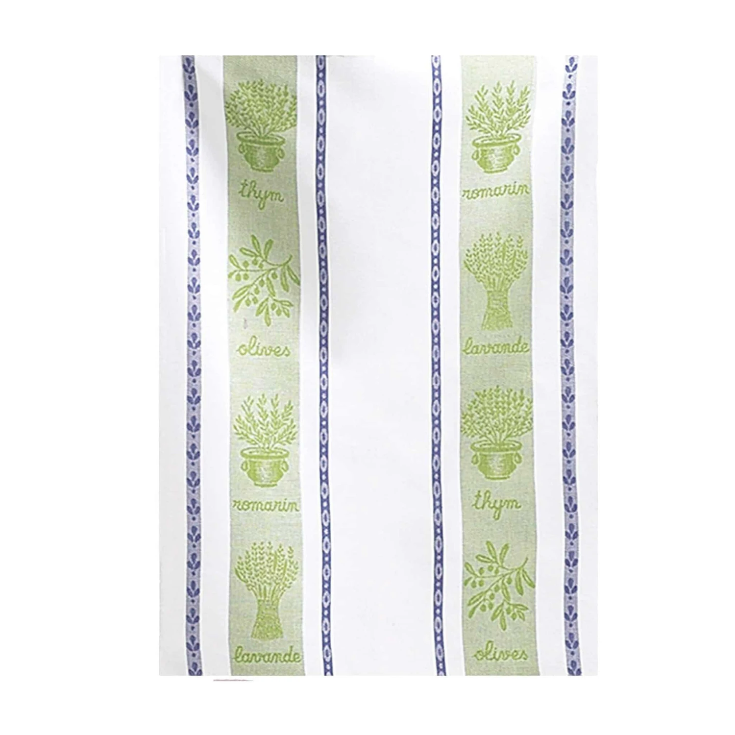 This elegant green dish towel is framed with decorative olive leaves and ornamental scrolls, and celebrates one of the essentials of great Meditteranean cooking – olive oil! The generously sized tea towels are made from 100% cotton, with rich green patterning.