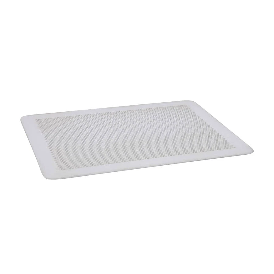 The De Buyer micro-perforated baking sheet is made from uncoated aluminium. Though lightweight it is very durable and resistant to deformation.