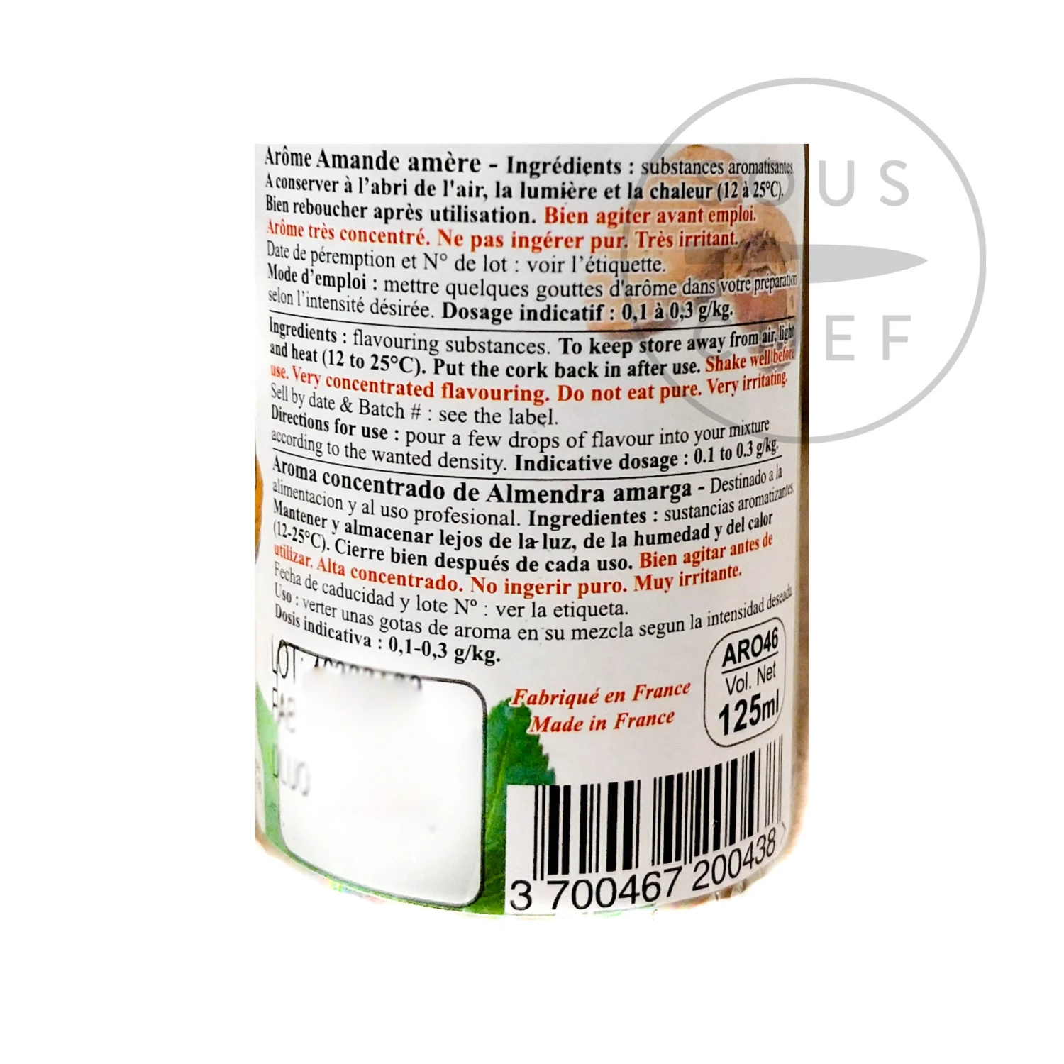 This concentrated bitter almond flavour brings an intense bitter almond flavour and aroma to baking and patisserie. Déco’relief concentrated aromas are used by top chefs and patissiers across France, in cakes, macarons, ganaches, sorbets, ice-creams, sweets and chocolates.