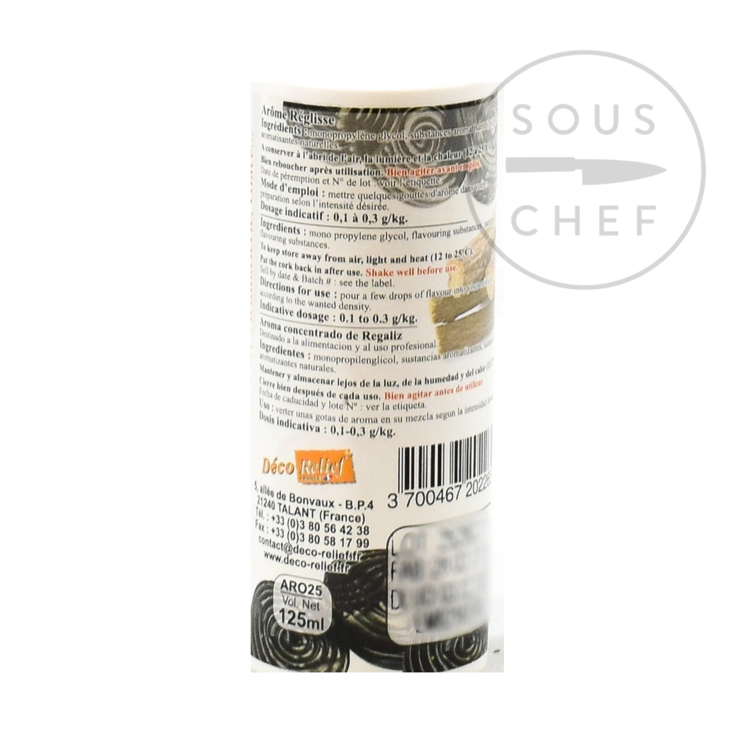 This concentrated liquorice flavour brings an intense liquorice flavour and aroma to baking and patisserie. Déco’relief concentrated aromas are used by top chefs and patissiers across France, in cakes, macarons, ganaches, sorbets, ice-creams, sweets and chocolates.
