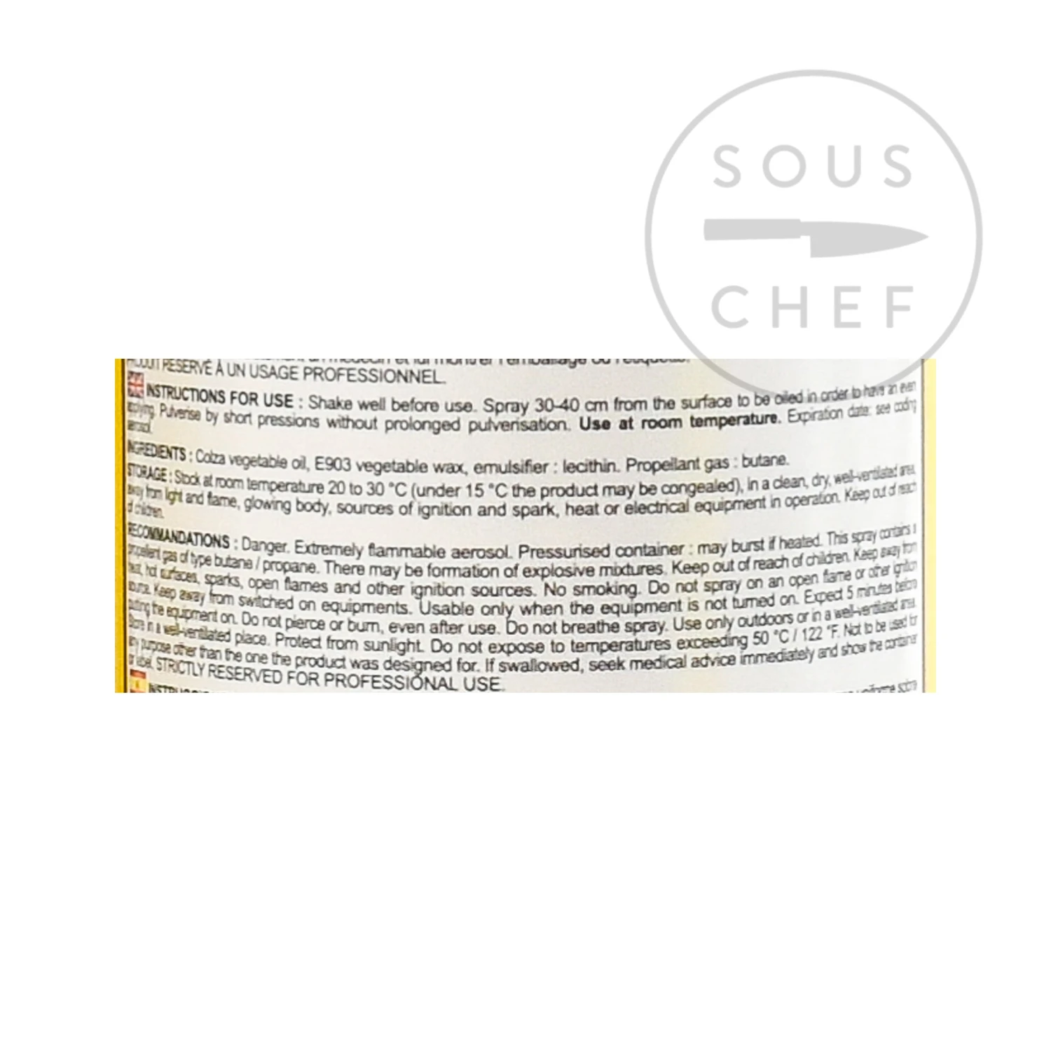 Ingredients: Vegetable oil, vegetable wax E903, emulsifier soya lecithin, propellant gas (propane / butane)