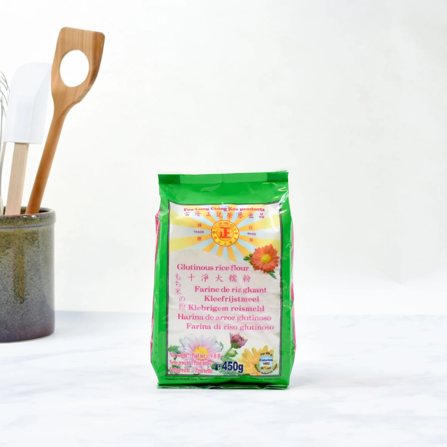 Glutinous rice flour is milled from short-grained, sticky rice, and is used to make sticky or chewy textured Asian sweets and desserts. The use of ‘glutinous’ in its name refers to the gluey consistency the flour gives to food – though glutinous rice flour doesn’t actually contain any gluten.