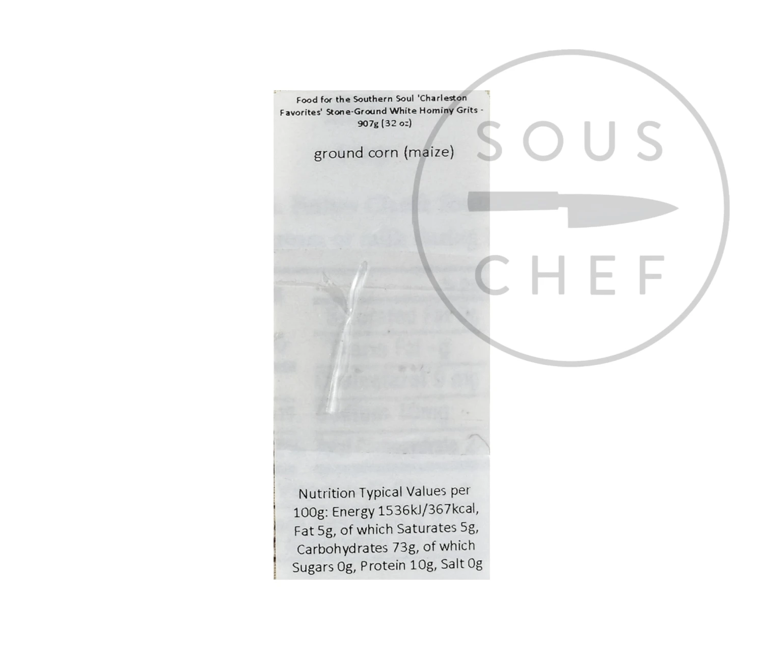 Food for the Southern Soul stoneground white hominy grits is a traditional southern American coarse corn flour, for making authentic shrimp and grits. The Charleston Favourites grits come in a lovely fabric sack, and is made from carefully selected corn, which is ground on a stone millstone.Â