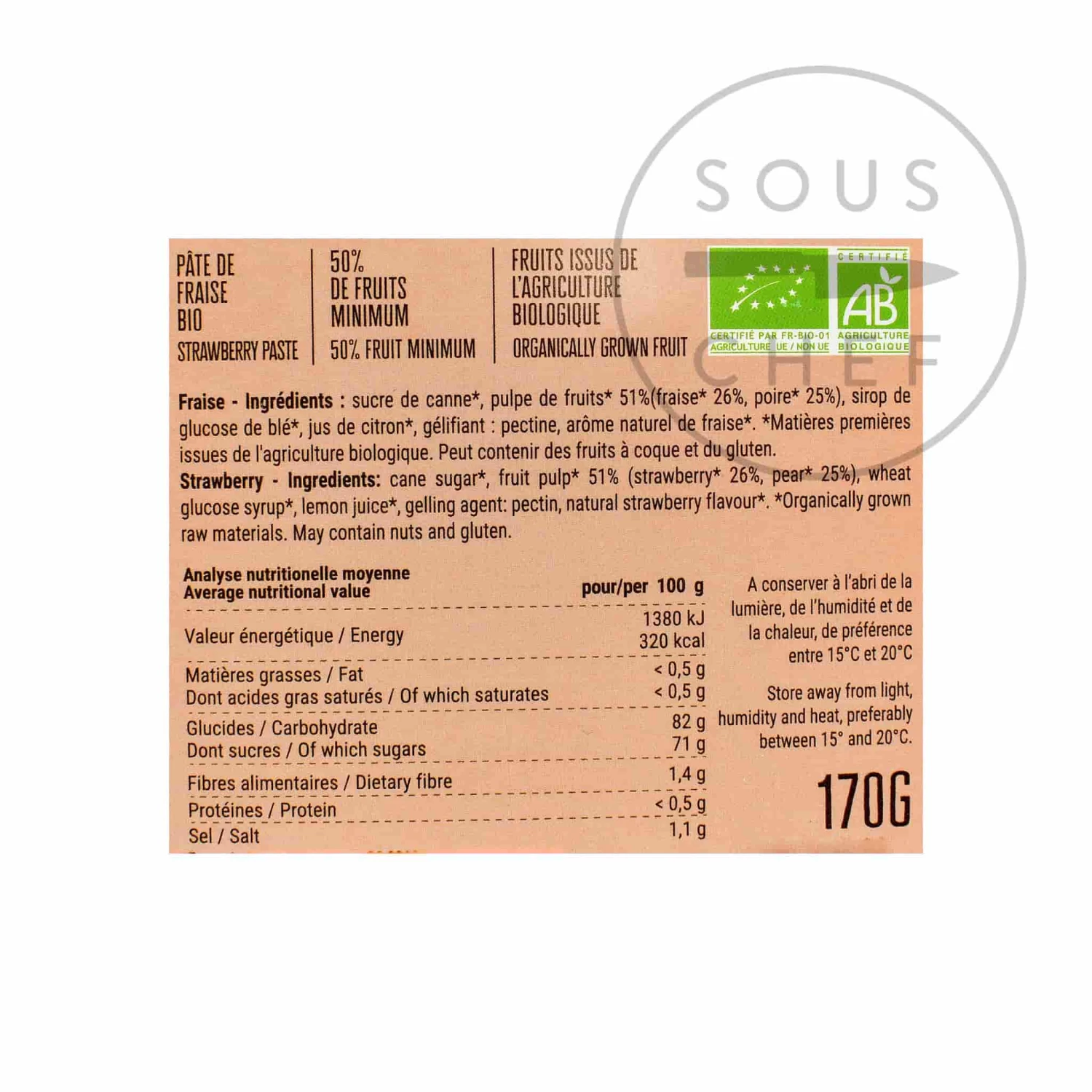 Francois Doucet Organic Strawberry Paste 170g Ingredients