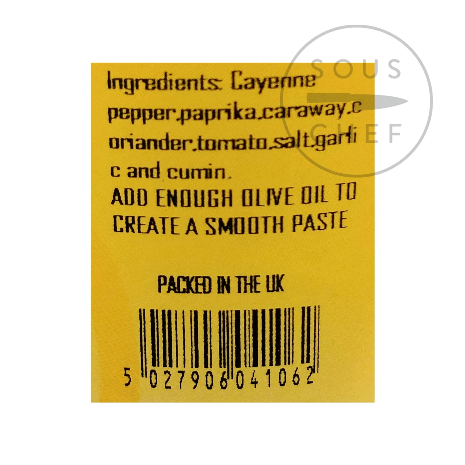 Ingredients: cayenne pepper, paprika, caraway, coriander, tomato, salt, garlic and cumin.