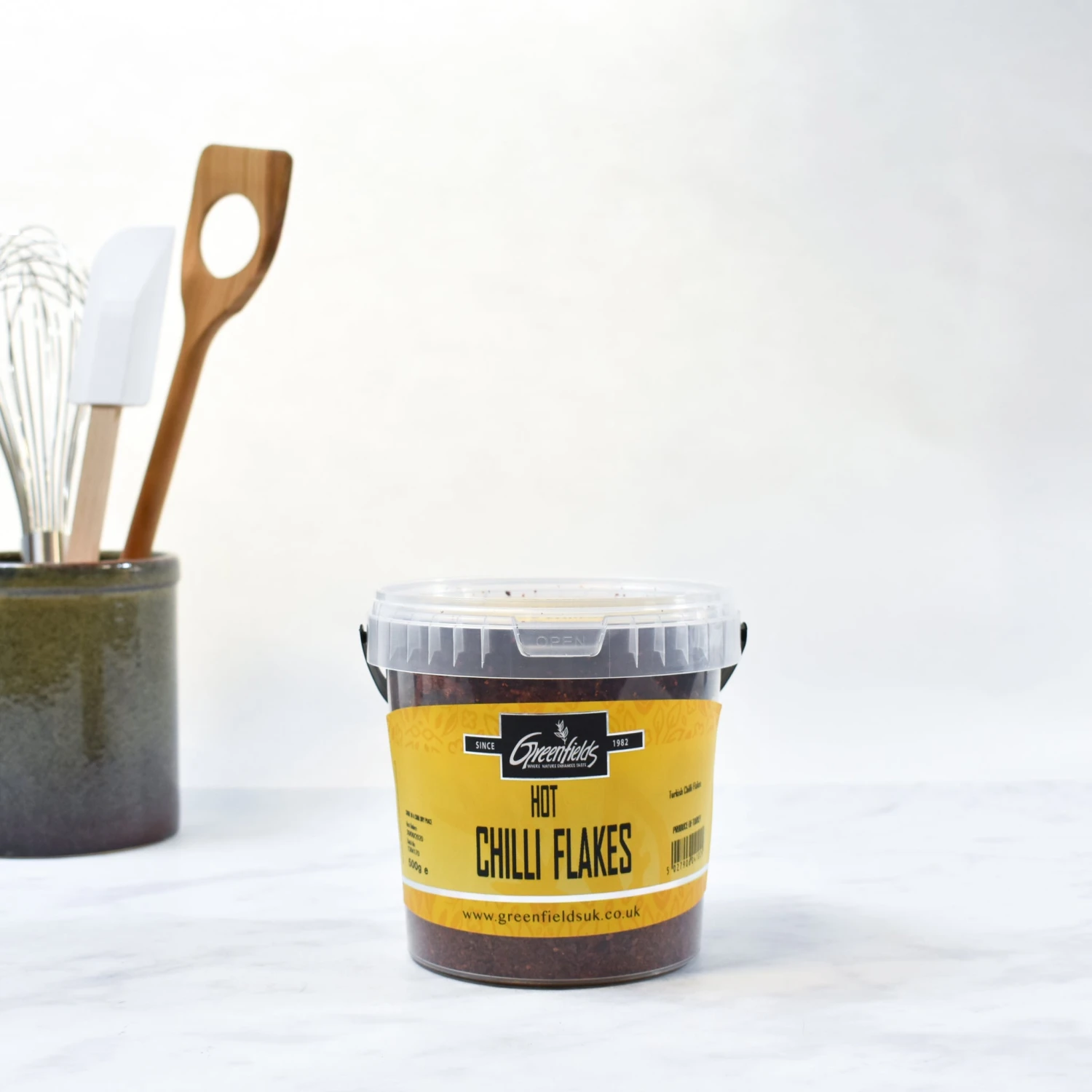 Turkish chilli flakes from Greenfields, a second generation UK-based family business. Greenfields’ herbs and spices are used by restaurants, artisans and street food producers across the country – all who enjoy their great value, kitchen-safe and easy-to-use resealable plastic tubs for their ingredients. Their philosophy is to provide good quality products at a great price.