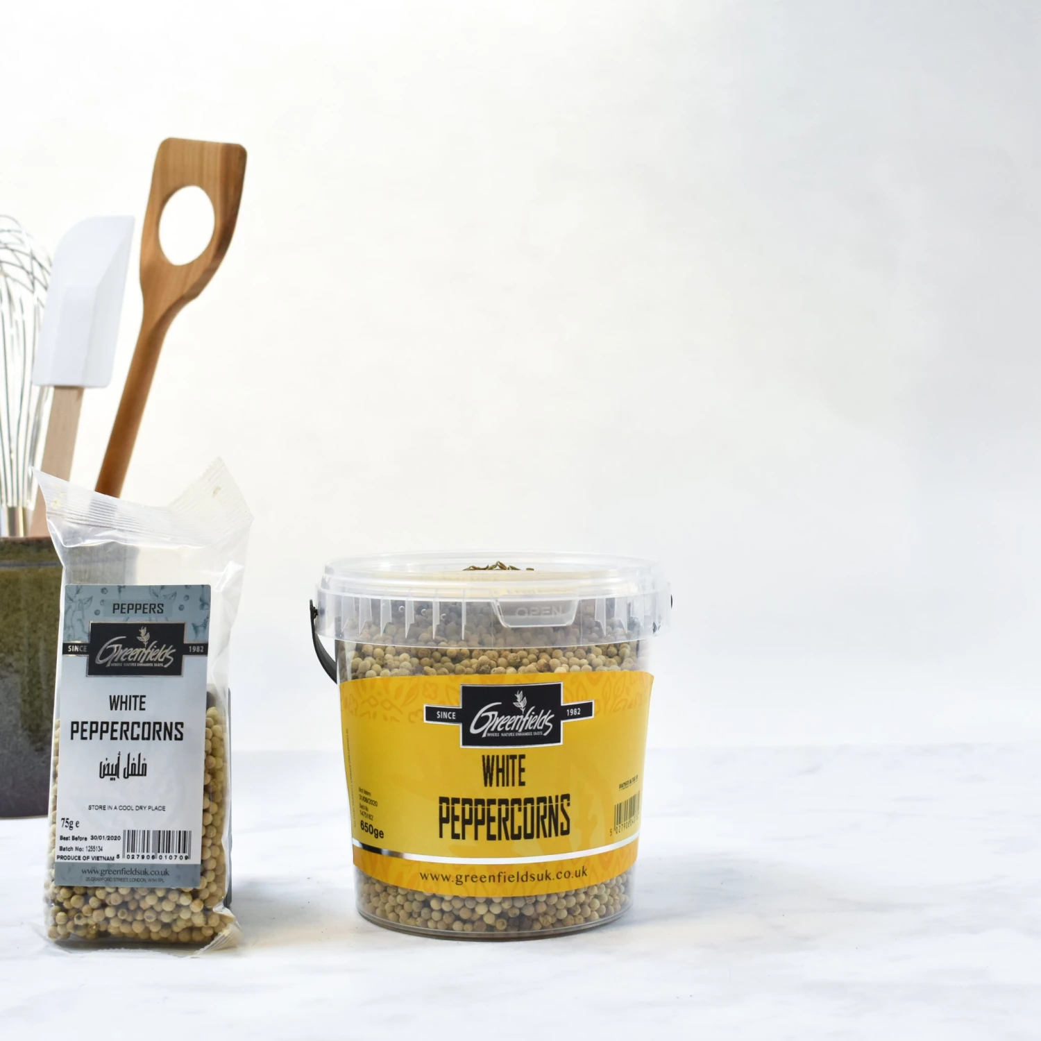White peppercorns add fragrant, milder peppery notes to white sauces for steak and fish.