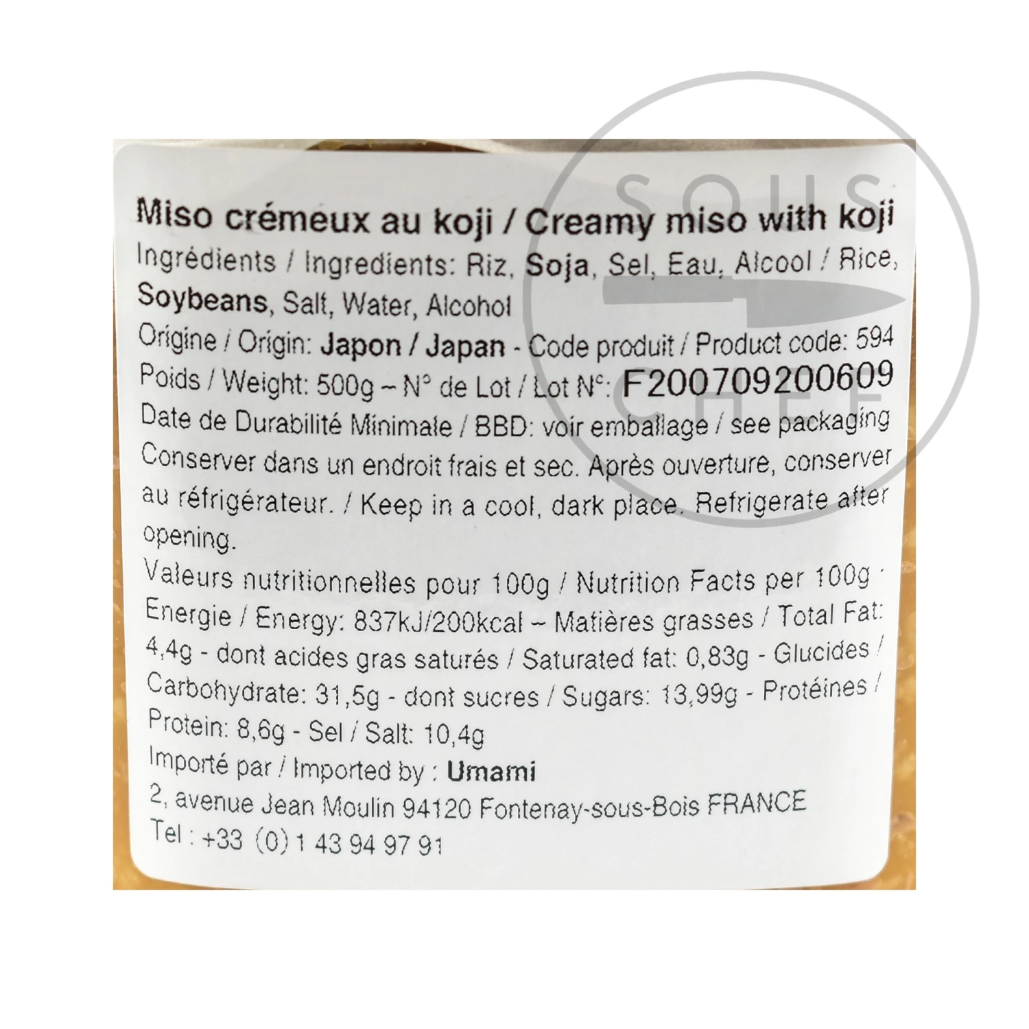 Creamy miso with koji makes a wonderful marinade for fish and meat thanks to its sweet, slightly salty, umami flavours. White miso is a fermented bean paste that is a key ingredient in Japanese cooking. This creamy version has been fermented for a shorter than average time and contains less salt, giving a lighter flavour.