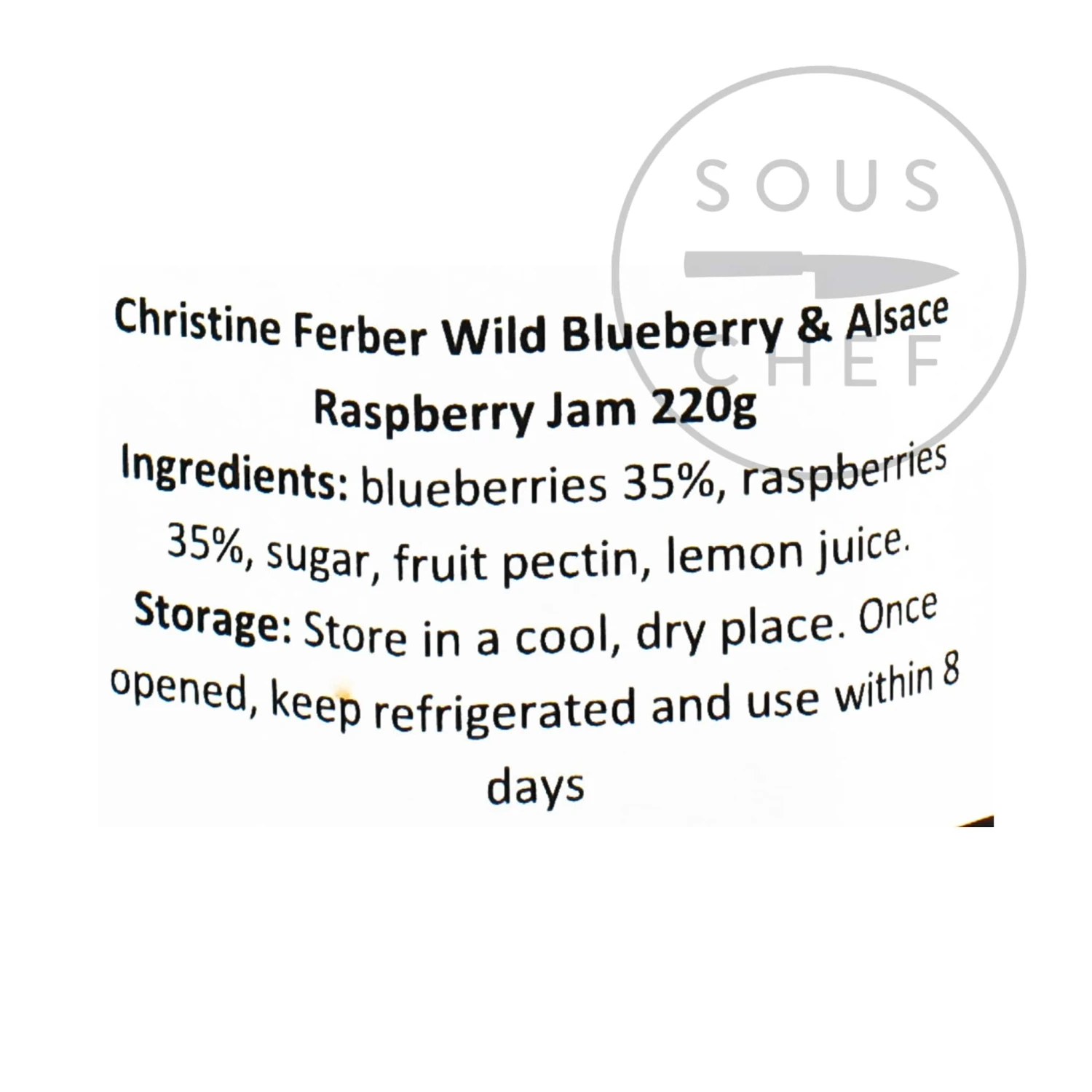 Ingredients: blueberries 35%, raspberries 35%, sugar, fruit pectin, lemon juice.Â