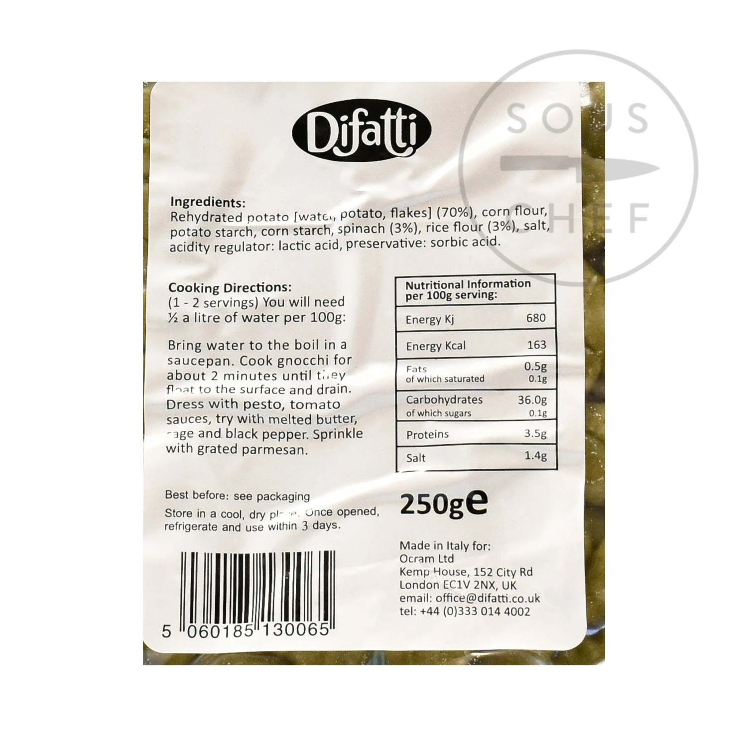 The gluten free gnocchi are made with rice and corn flour instead of wheat flour. Difatti use traditional Italian methods to make sure they have the same great flavour and texture as classic gnocchi.