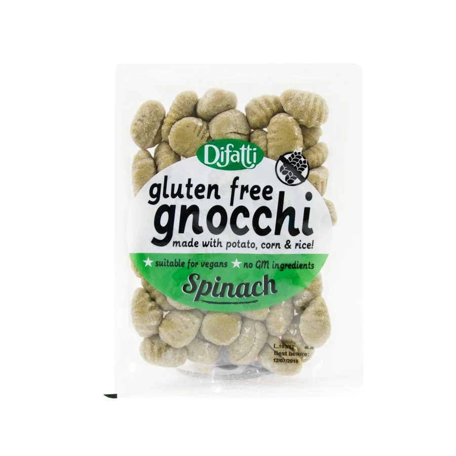 Difatti gluten free spinach gnocchi are an Italian classic, now reinvented with spinach. These plump potato dumplings with spinach are the perfect partner for cheese, garlic, pesto and chicken.