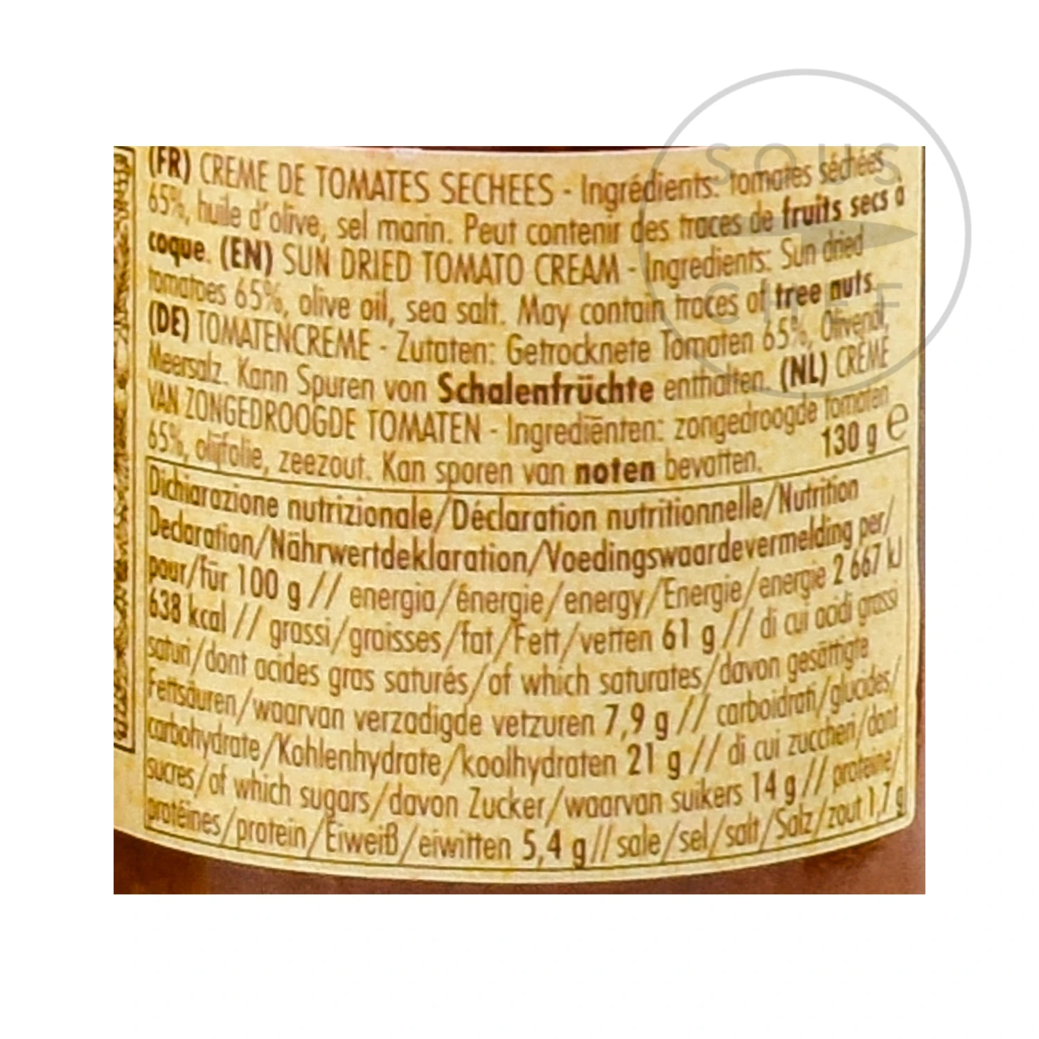 Ingredients: sun dried tomatoes (65%), olive oil, sea salt.