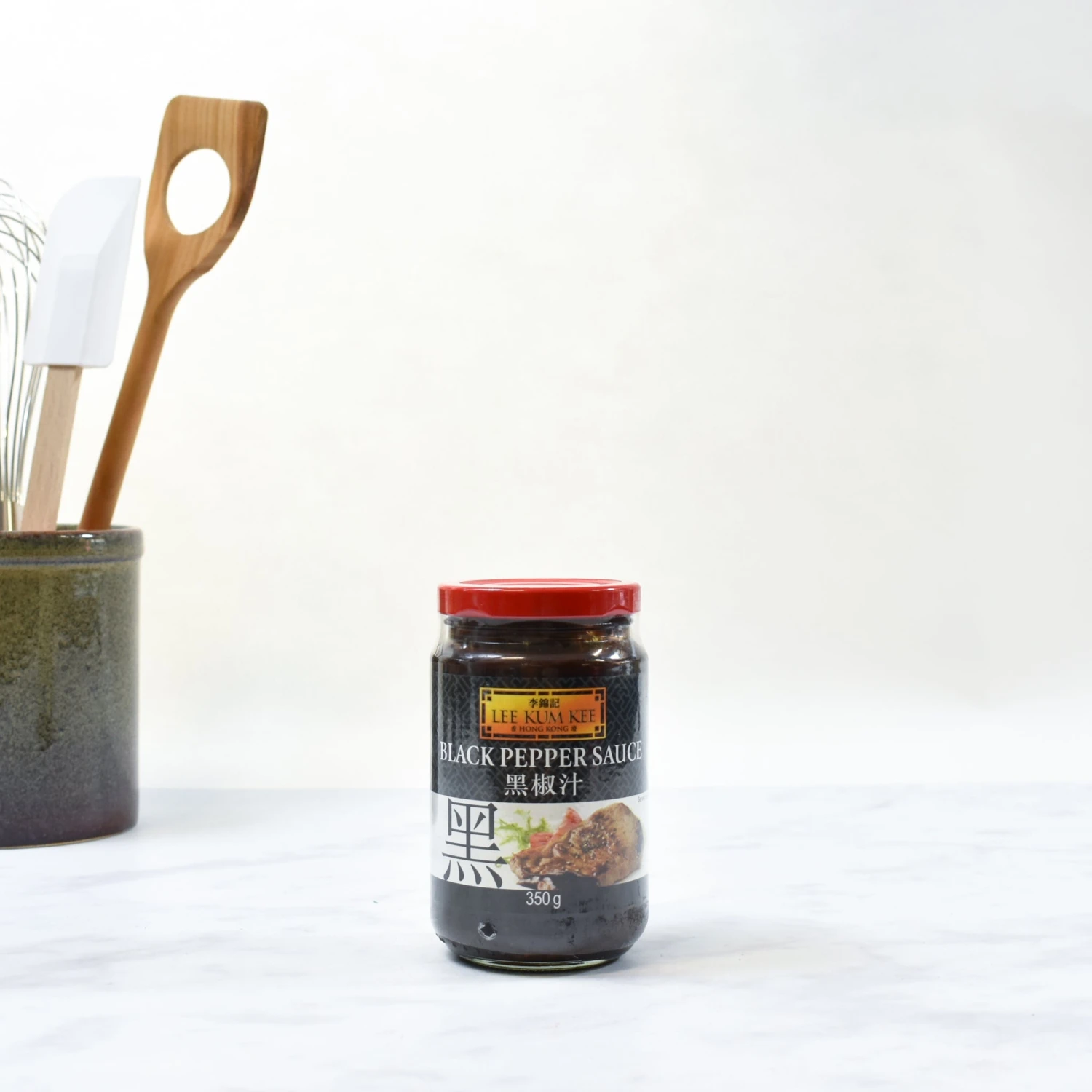 Lee Kum Kee black pepper sauce is a ready-to-use condiment for chicken and steak stir fries. The thick sauce has a rich sweetness from soy sauce and tomatoes, and a mild peppery heat.