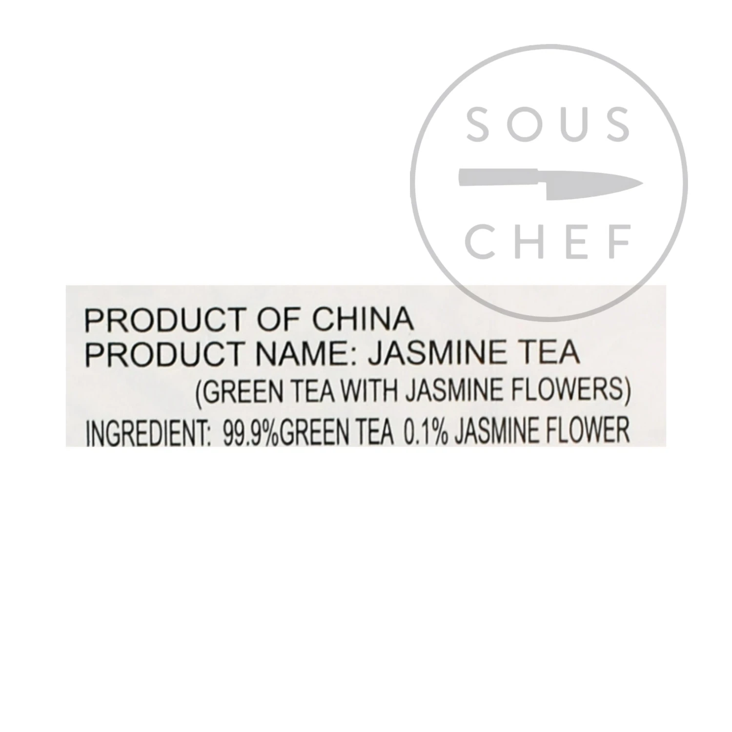 Ingredients: 99% green tea, 0.1% jasmine flowers.