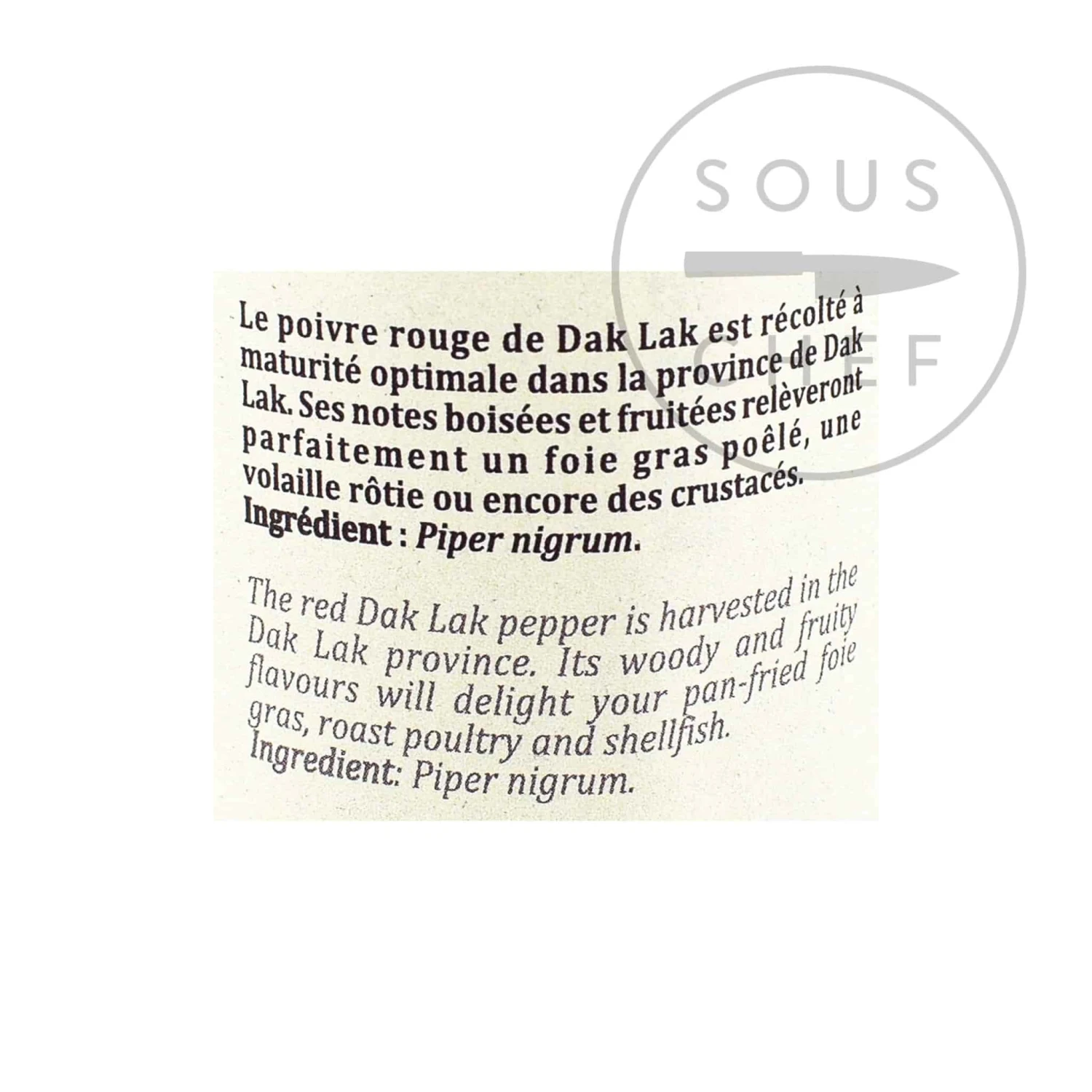 Terre Exotique’s red Dak Lak pepper is powerfully hot Vietnamese pepper – a fantastic pairing for white meat and shellfish. As well as its pungent heat, this pepper balances notes of balsamic and fruit.Â