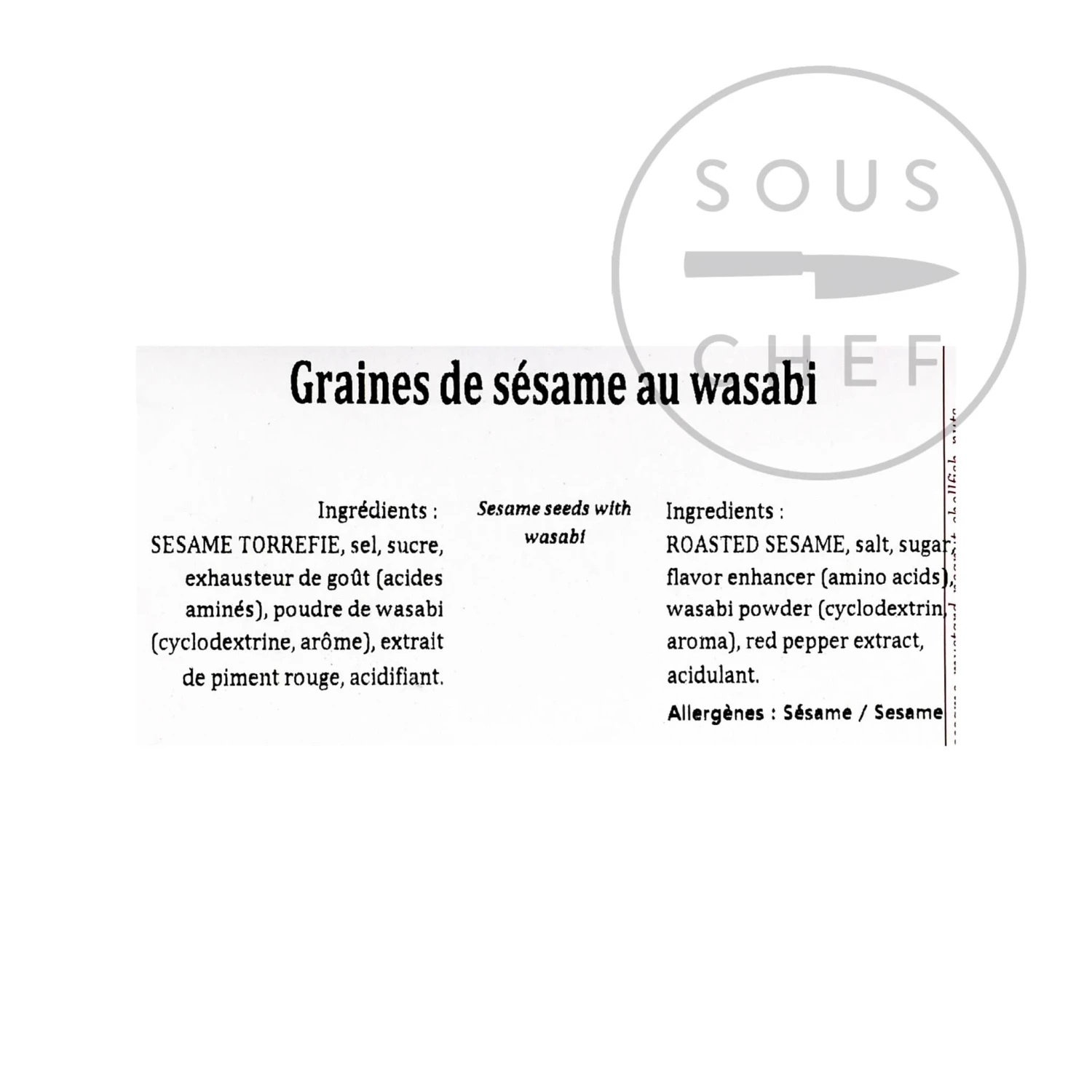 Ingredients: Roasted sesame, salt, sugar, flavour enhancer (amino acids), wasabi powder (cyclodextrin, aroma), red pepper extract, acidulant.Â