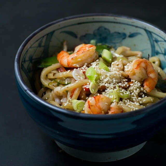 Attractive Japanese stoneware bowl, traditionally used for kamaage udon, a hearty noodle soup dish.