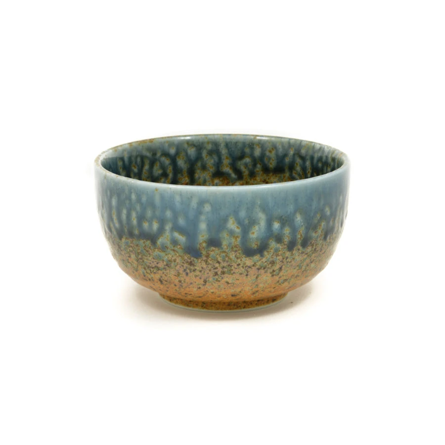 “Chouseki” means tide in Japanese reflecting this bowl’s stunning pattern – sea blue glaze merges with a speckled sandy gold glaze like waves on the shore. This chouseki blue gold bowl makes a lovely addition to a Japanese table.