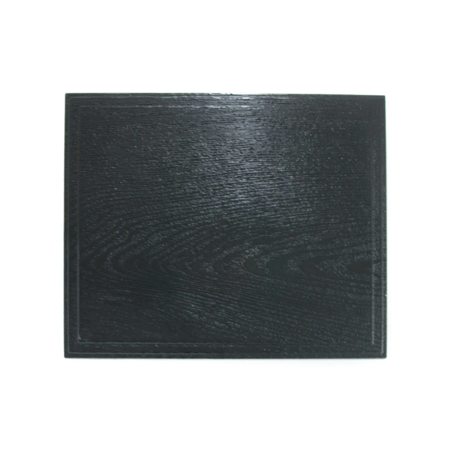 The bento box is designed to resemble traditional Japanese lacquered wood. The outside of the box is black with a wood-grain texture, while the interior is a glossy red.