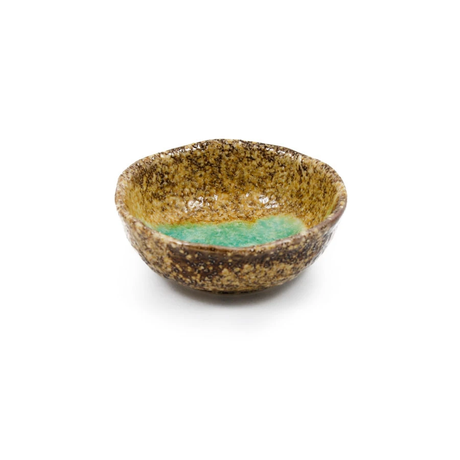 Use the midori soy sauce & pickle bowl to serve dipping sauces alongside sushi, tempura and dim sum. Or perhaps use the midori bowl to serve portions of Japanese pickles with rice and noodle dishes. The textured Japanese stoneware bowl features a crackle glaze base in light blue-green, surrounded by a sandy, speckled glaze – like a mini desert oasis.