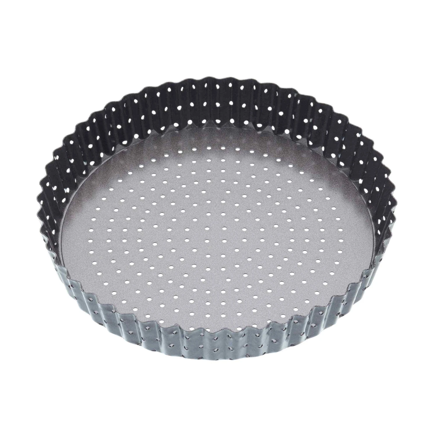 KitchenCraft’s Crusty Bake non-stick quiche tin has fluted edges and 3cm deep sides. The perforated base and edges are the key to beautifully baked golden pastry. While baking, any excess moisture can escape through the small holes – not a soggy bottom in sight!