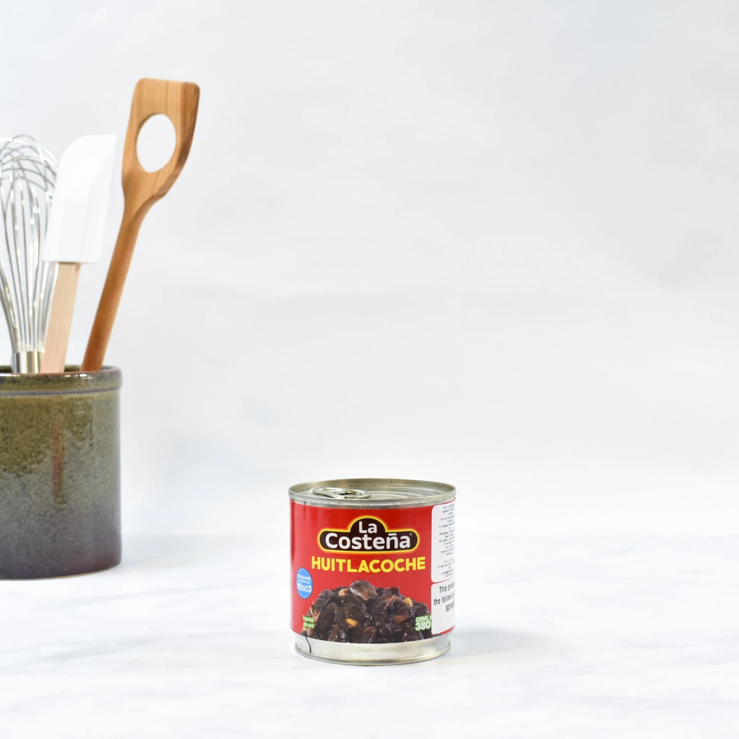 Cuitlacoche, or huitlacoche, is an inky black paste with a smoky, earthy flavour. Cuitlacoche comes from a purposefully-cultivated fungus grown on the ears of corn which is simmered to a deep coloured paste.