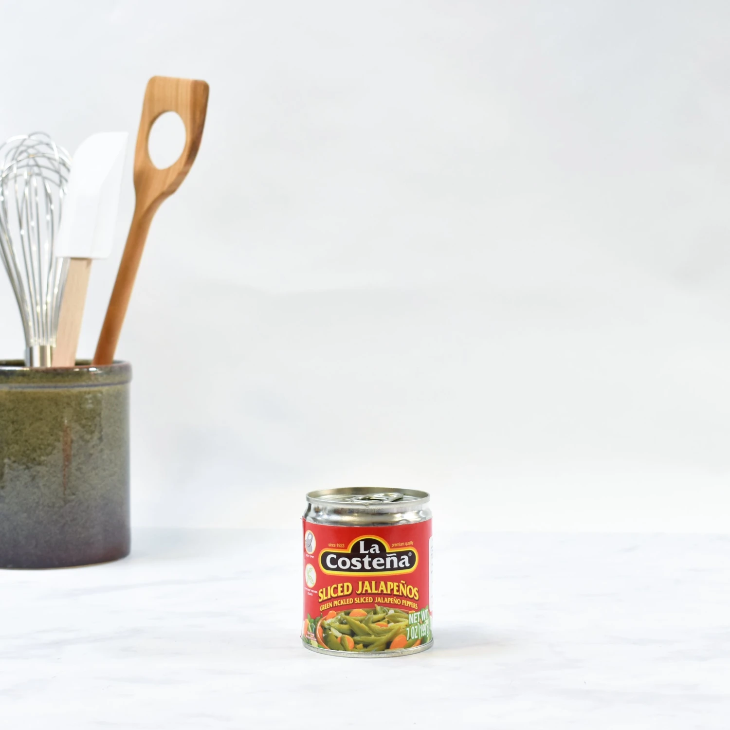 The La Costeña sliced green jalapeño peppers have been pickled in a delicious, sesame oil and garlic mixture which adds extra complexity to the jalapeño chillies. The spicy sweet taste is a distinctive, South American flavour which enhances a wide variety of Mexican and Tex Mex dishes. Try adding to dips, salsas and bean salads as well as sneaking a few jalapeños inside a burger or on top of a pizza.Â