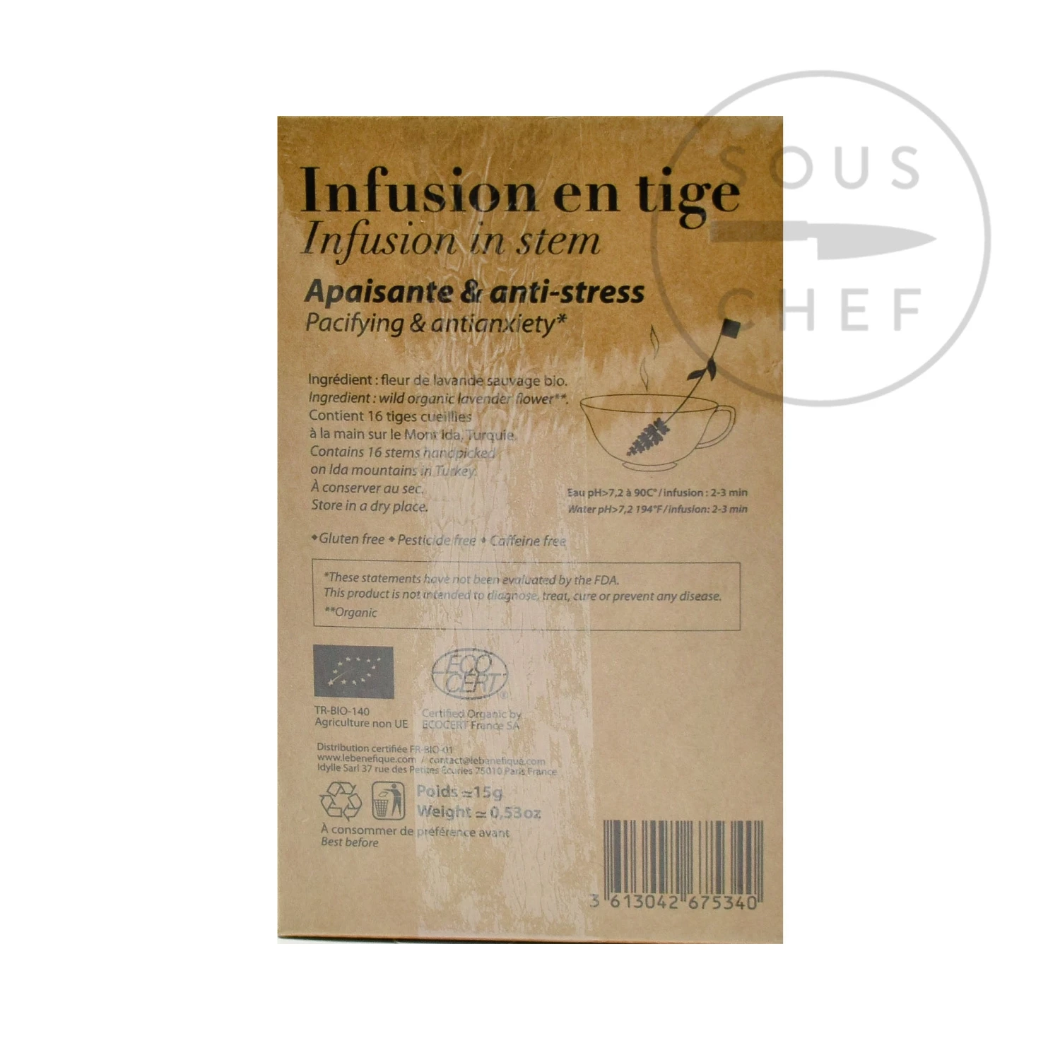 These Le Benefique organic lavender stems have a powerful, distinctive flavour – a mix of sweet floral notes with a gentle spiciness that develops in the infusion. Lavender is an incredibly evocative scent which represents serenity and calmness. Contains 16 stems.