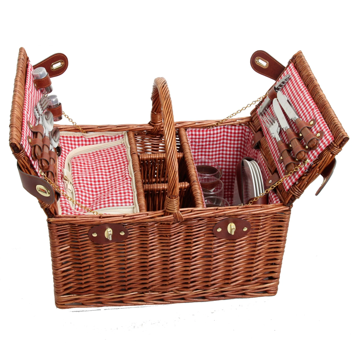The Saint Germain picnic hamper for four comes with everything you need for a luxurious family picnic – just add food! The hamper is made in a vintage ‘red riding hood’ style, and is hand crafted from natural willow with real leather straps.