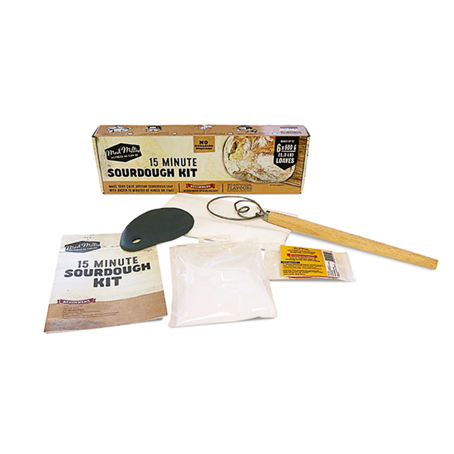 There are few things more pleasurable than a freshly baked loaf of sourdough, and the Mad Millie 15 minute sourdough kit makes it easier than ever. With Mad Millie’s instant sourdough starter and essential utensils, you only need to spend 15 minutes of hands-on prep time to make a wonderfully light sourdough loaf with a perfectly crisp crust. You don’t even have to knead any dough!