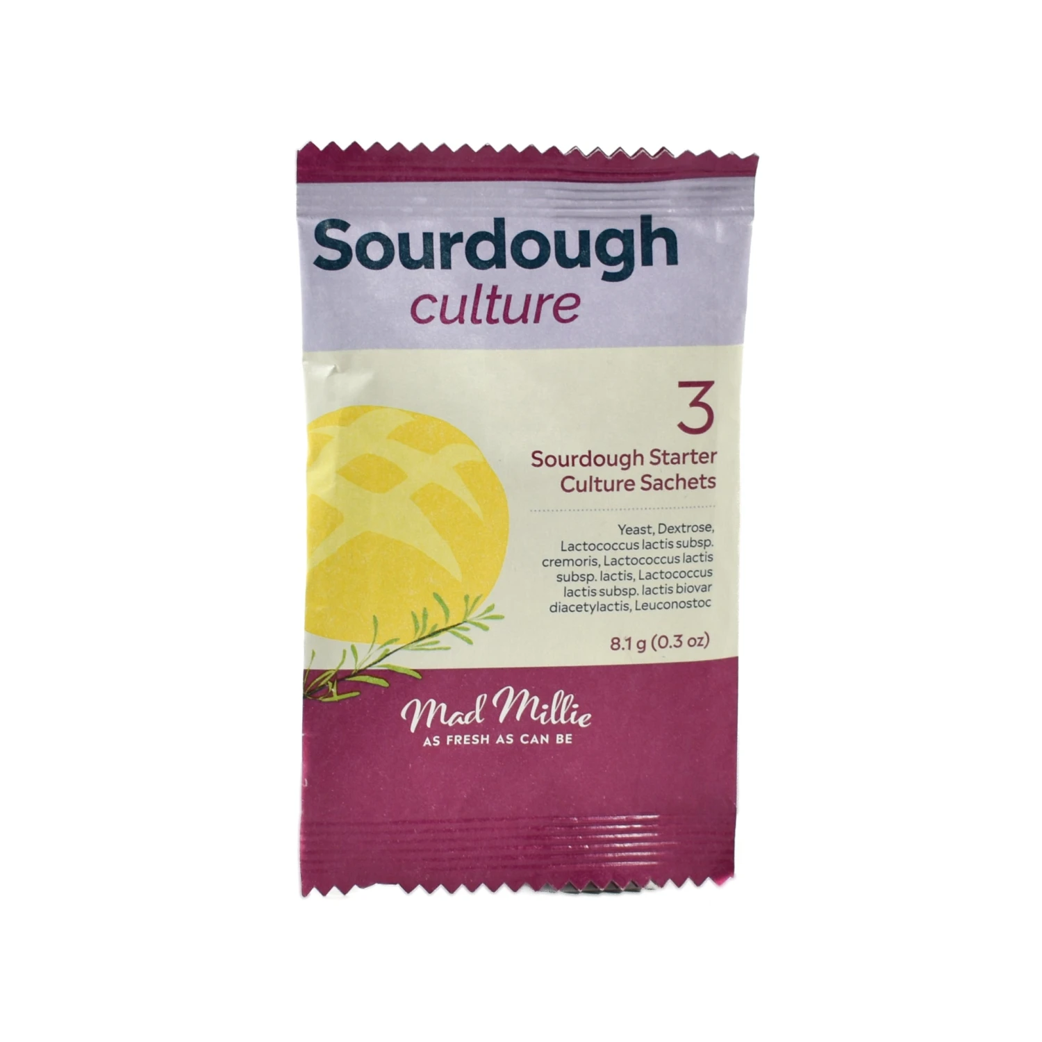 Use these Mad Millie sourdough yeast / cultures with your Mad Millie 15 minute sourdough bread making kit. Or use in place of a traditional starter with any sourdough recipe whenever the craving for sourdough strikes! With these sachets you’ll always be ready to bake a stunning sourdough loaf at home.