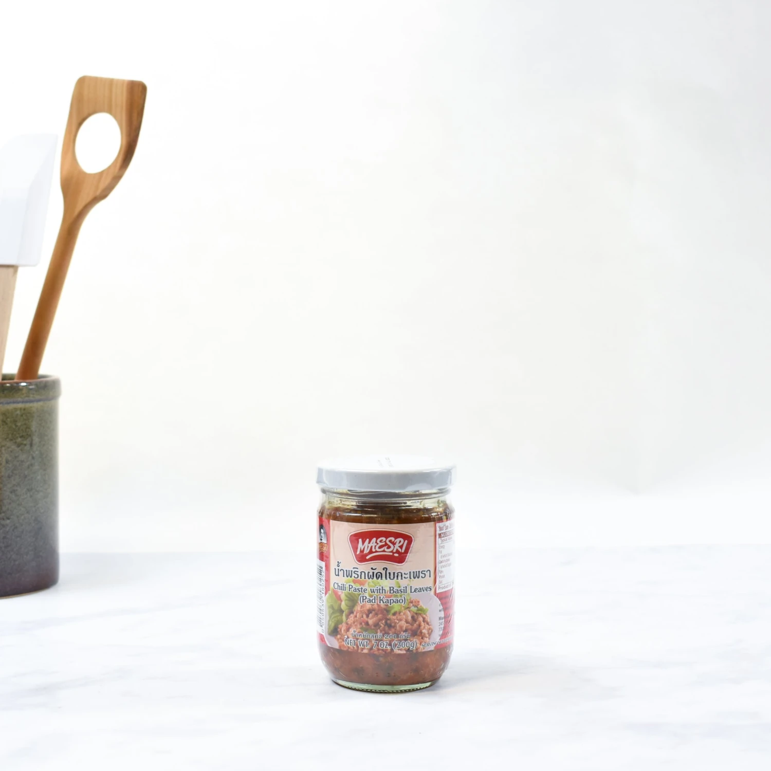 Thai chilli paste with holy basil is a fragrant, spicy paste used in Thai cuisine. Holy basil is a herb native to South East Asia and is used in the stir fry dish pa kapao or pad kra pao.