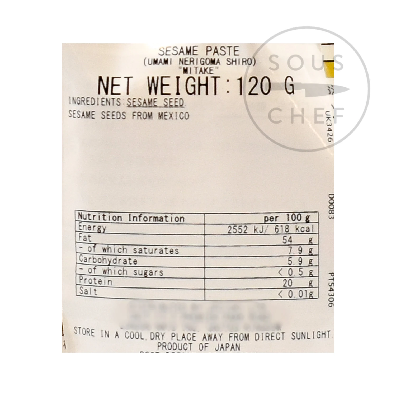 Ingredients: white sesame seeds. Contains allergens: sesame. Store in a cool, dry place. Once opened, keep refrigerated.