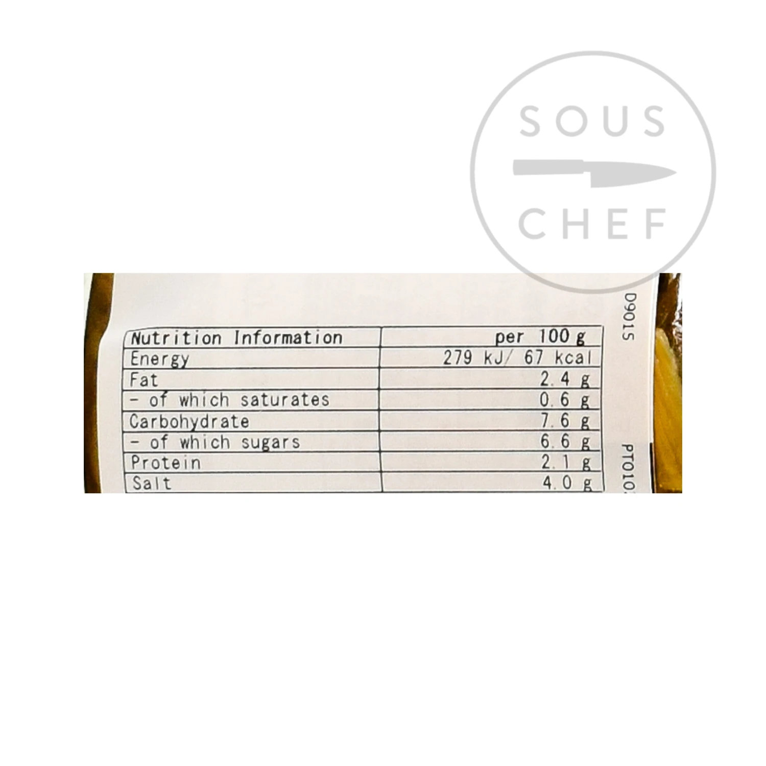 Ingredients: bamboo shoots (80%), soy sauce (water, soybeans, wheat, salt), sugar, sesame oil, salt, yeast extract, flavour enhancers: E621, E635, onion powder, acids: E575, E330. Contains allergens: soya.