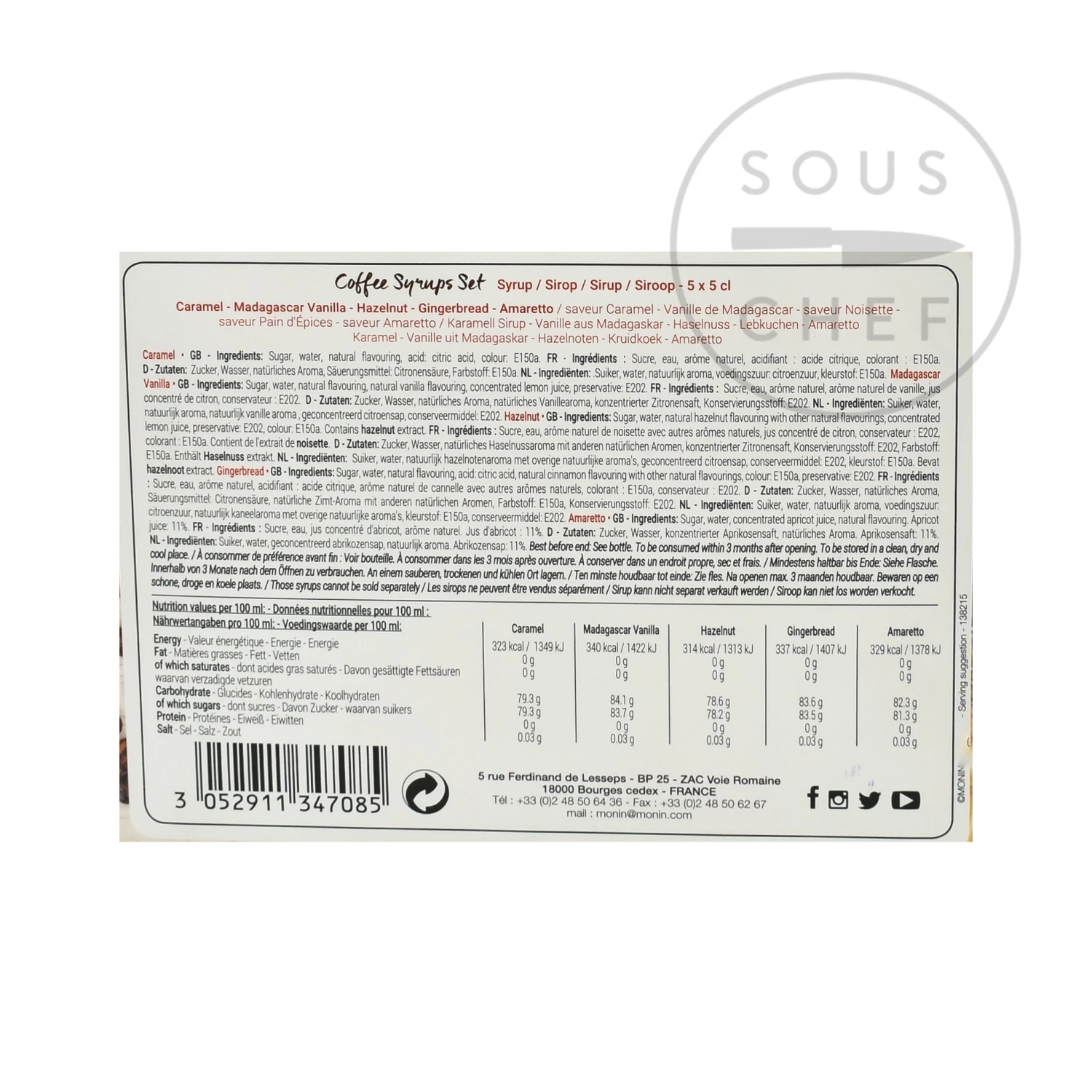 This set of five speciality sugar-based coffee syrups includes some of Monin’s most popular flavours, but in miniature