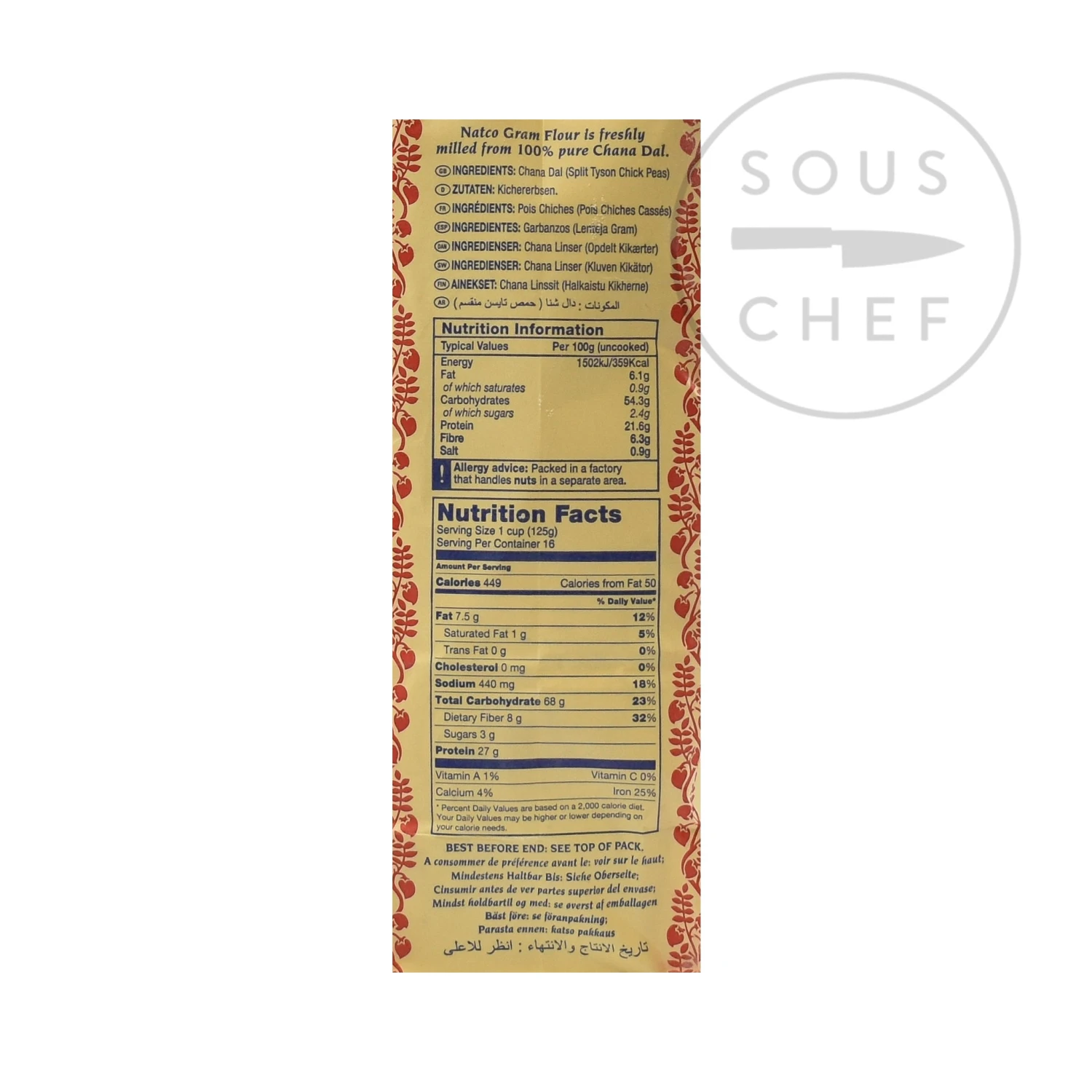 Superfine gram flour, also called besan, is a widely used flour in Indian cuisine. Gram flour is made from chana dal (an Indian variety of chickpea) which are hulled and split, ground into a fine-textured, yellow-ish, gluten-free flour. Gram flour has a subtly earthy aroma and slightly nutty flavour.