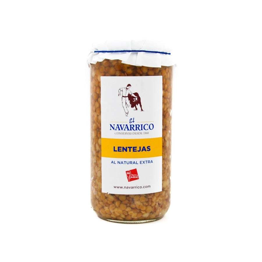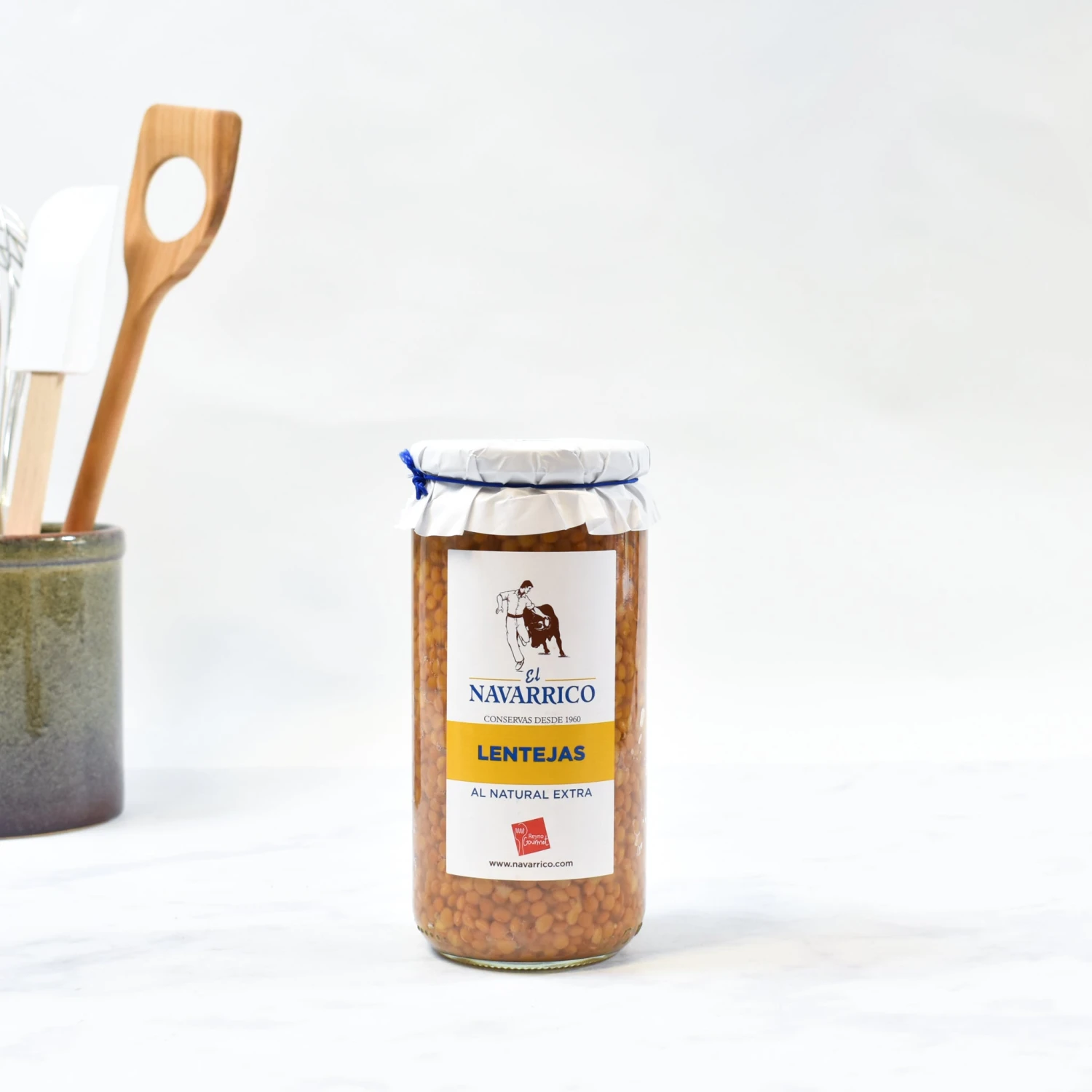The lentejas brown lentils are grown in Leon in northern Spain. They’re then transported to Navarre at the foot of the Pyrenees where El Navarrico cook them to perfection before packing the lentils in jars.