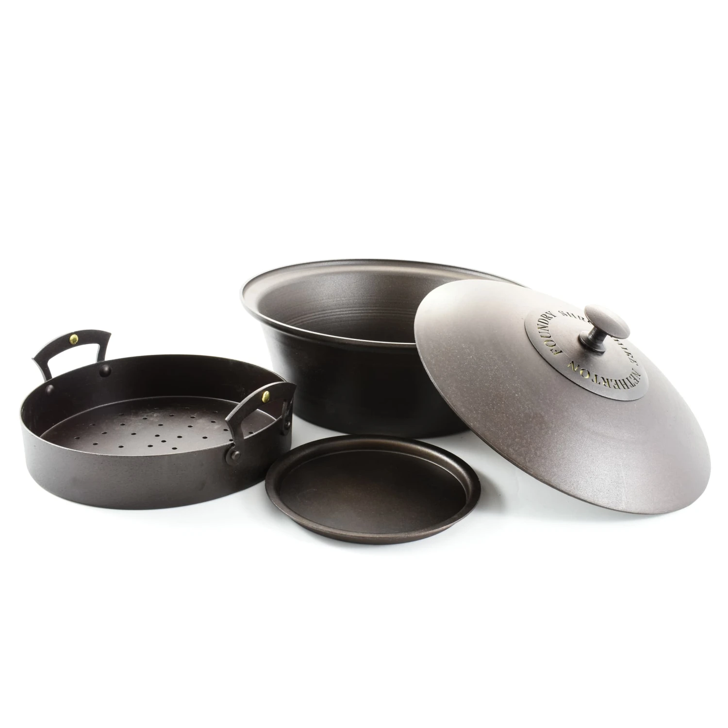Hot smoking is a wonderful way of cooking food while infusing a smoky flavour on ingredients. This indoor set can be used on gas or electric hobs, while the casserole bowl can also be used in the oven and over open flames.