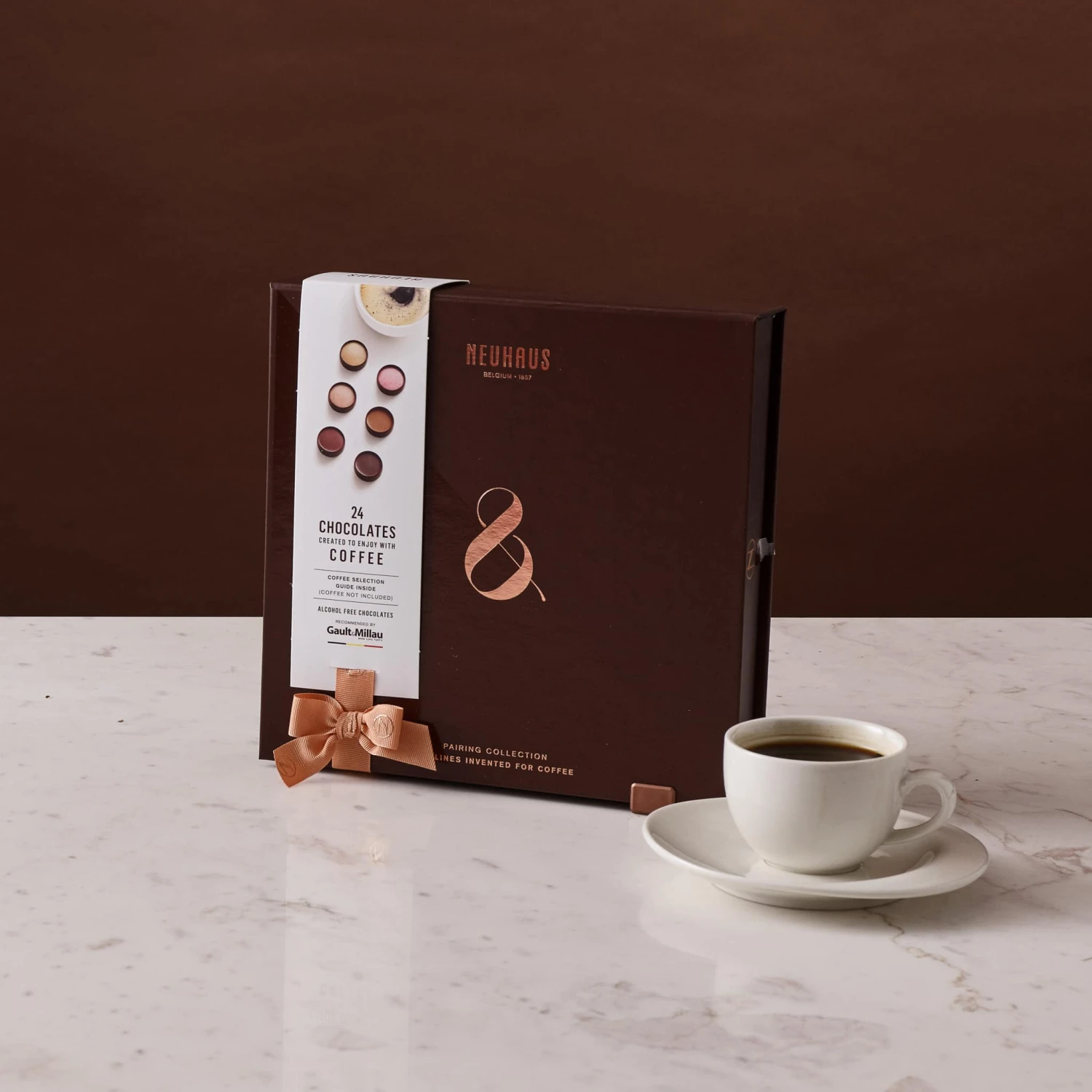 Neuhaus’ pralines coffee pairing selection is the perfect sweet treat to serve with an espresso – from one of the finest chocolatiers in Belgium. Containing 24 chocolate pralines in six different flavours, this collection is designed to be enjoyed alongside coffee – think of it as a tasting flight in chocolate form.