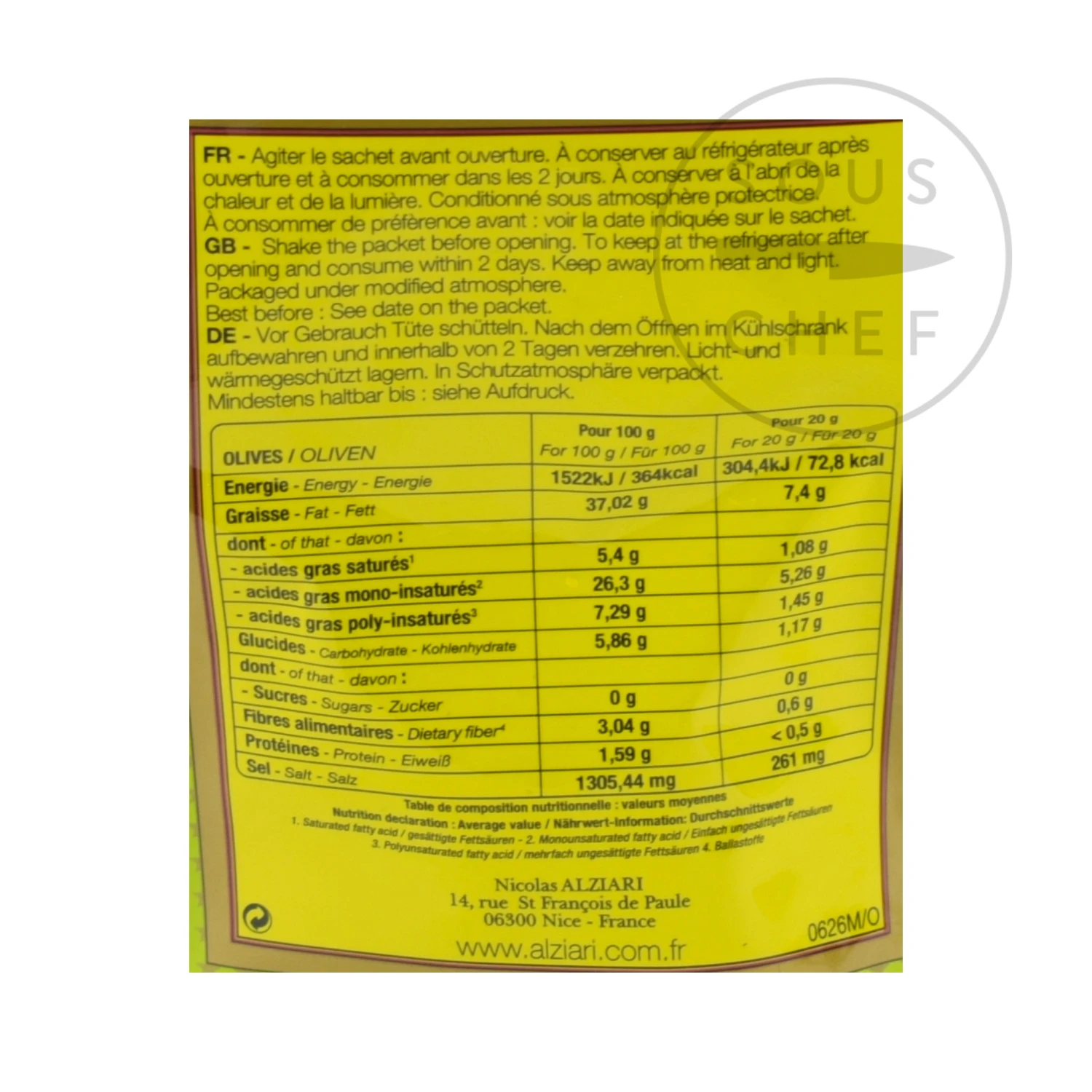 Ingredients: Olives, extra virgin olive oil, herbs of Provence.